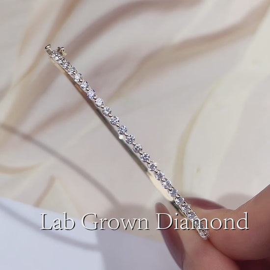 The Ecob-569 "Guardian Grace" bracelet is a sculptural tribute to power and poise—where the spirit of the panther meets the precision of fine jewelry. Crafted in a rigid bangle silhouette, the bracelet features a front arc adorned with round brilliant-cut lab-grown diamonds, each held in delicate prong settings that allow light to dance freely across the wrist.