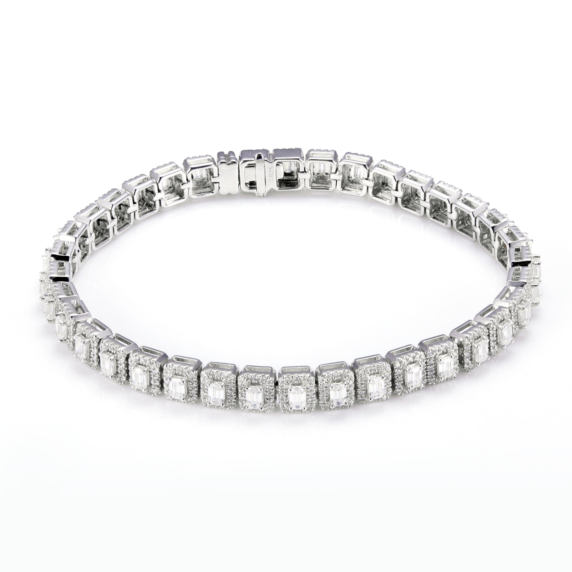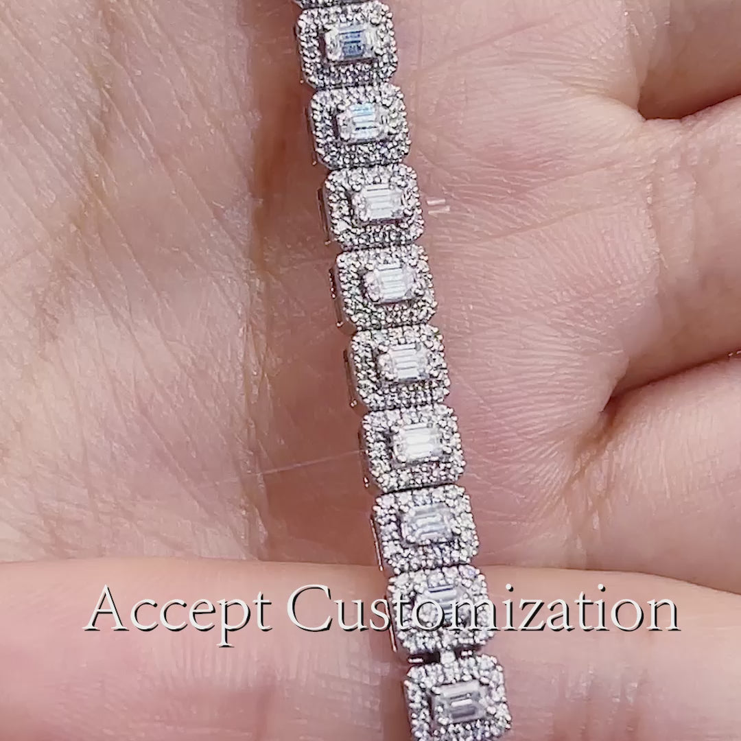 Emerald-Cut Center Stones with Round Diamond Halos (Tennis Bracelet)