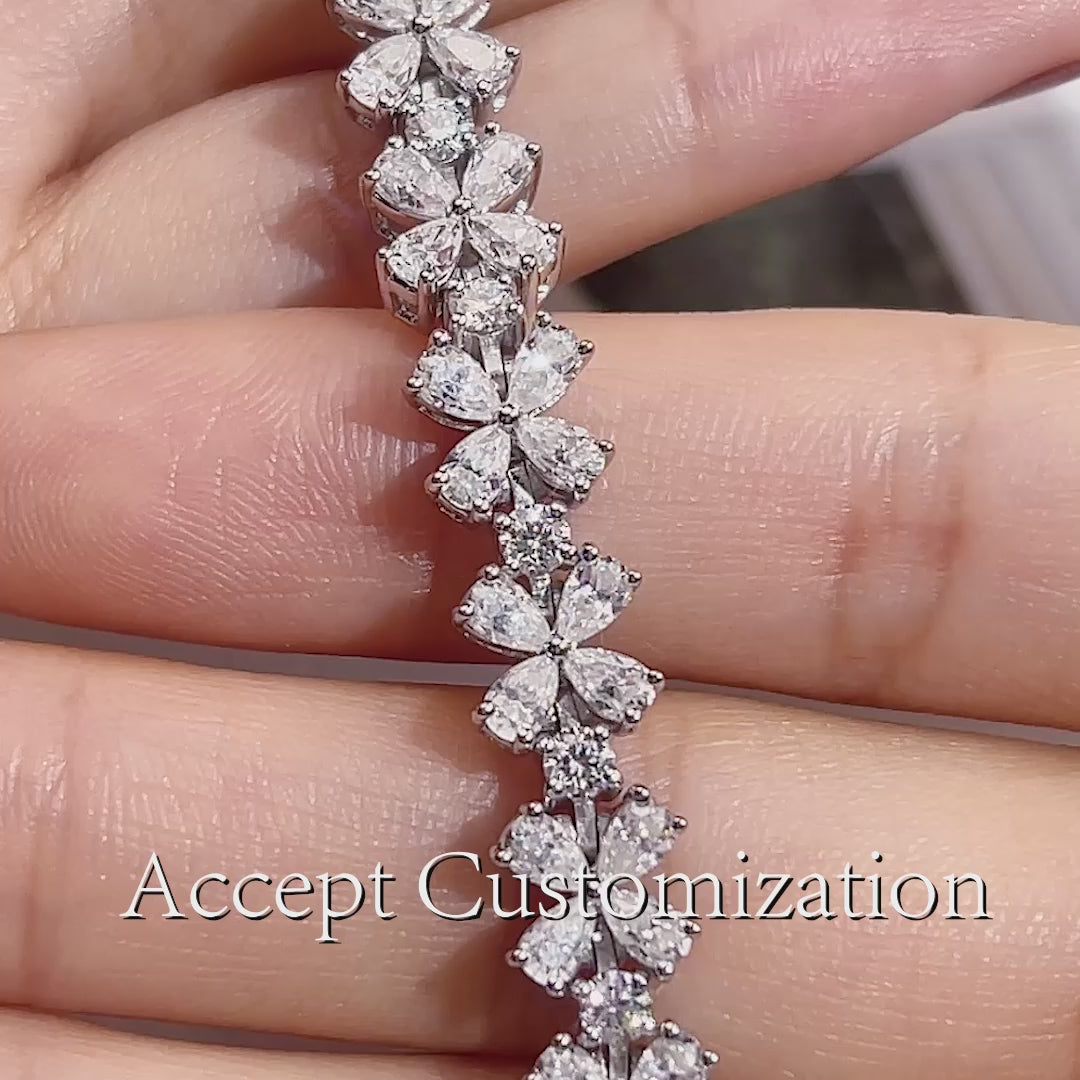 The Ecob-581 "Bloom in Motion" bracelet is a radiant composition of botanical geometry—where marquise, pear, and round-cut lab-grown diamonds are arranged in a flowing floral motif, each cluster resembling petals caught mid-bloom.