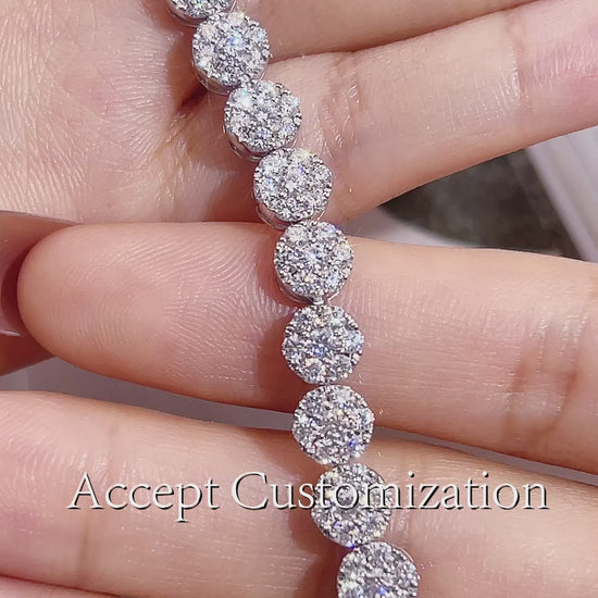 The Ecob-582 "Celestial Pulse" bracelet is a timeless ode to symmetry and sparkle—where each round-cut lab-grown diamond is set in a circular bezel or clustered halo, forming a continuous chain of brilliance that wraps the wrist like a celestial orbit.