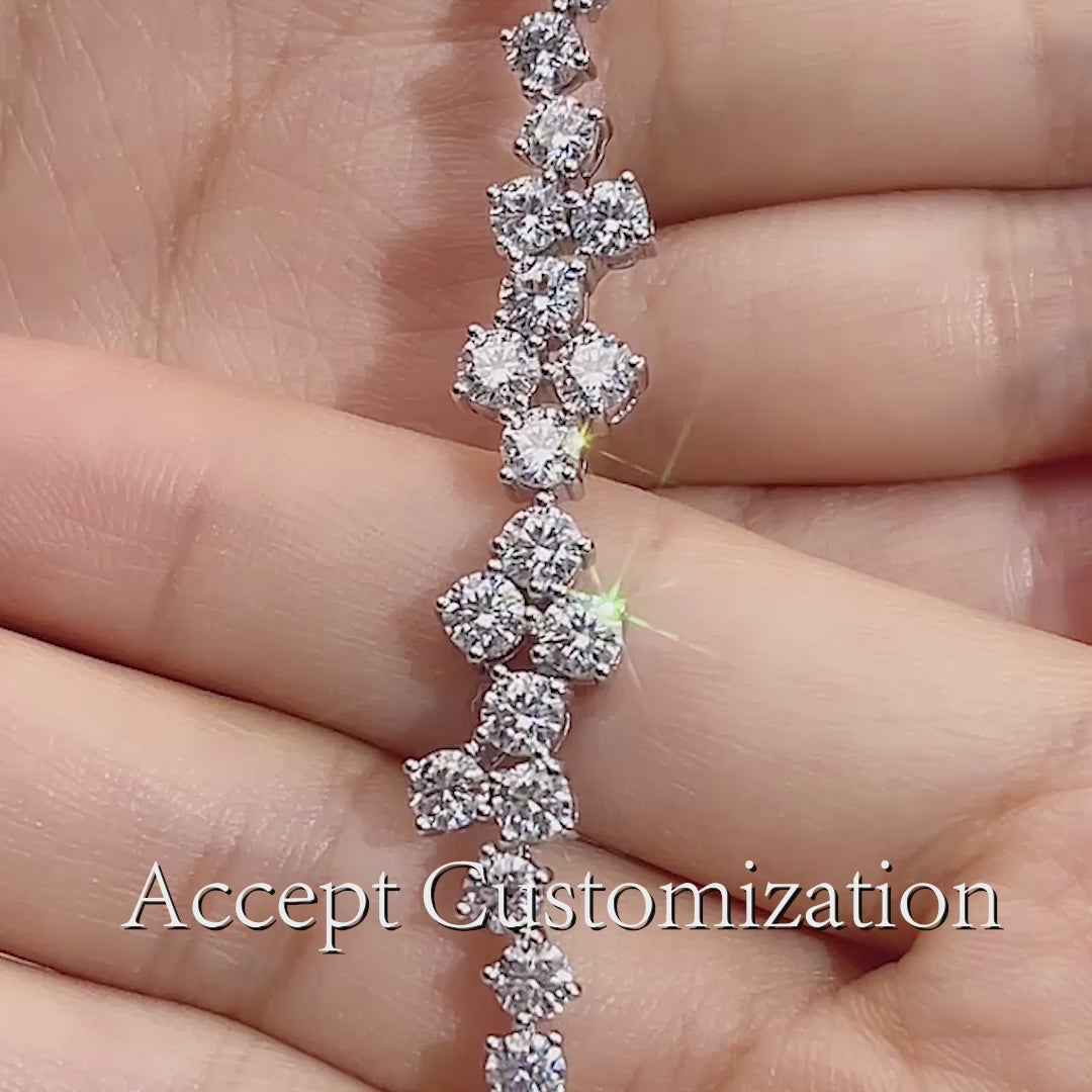 The Ecob-585 "Stellar Bloom" bracelet is a celestial composition of light and form—where round brilliant-cut lab-grown diamonds are arranged in alternating clusters and single-stone links, creating a rhythm of sparkle that evokes both floral symmetry and cosmic elegance.