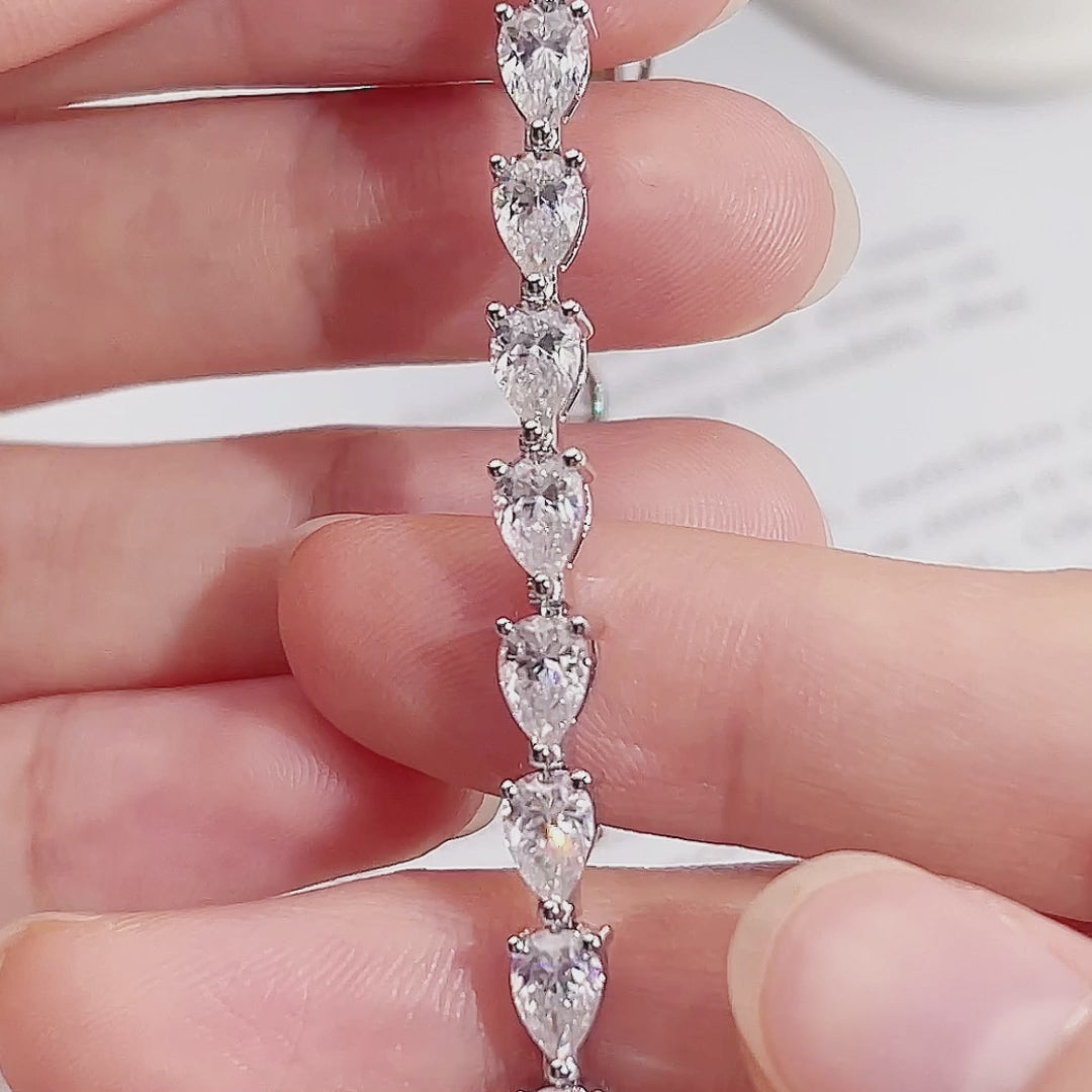 The Ecob-622 Lumière de Goutte Bracelet captures the elegance of falling light in motion. Each pear-shaped lab-grown diamond is delicately prong-set in a rhythmic sequence, forming a graceful arc of sparkle that wraps the wrist with timeless refinement.