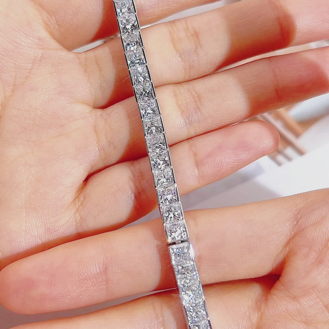 The Ecob-623 Lattice Radiance Bracelet is a modern classic that speaks in the language of light. Each square-cut lab-grown diamond is precision-set in a continuous line, forming a geometric tapestry of sparkle that wraps the wrist in quiet opulence.