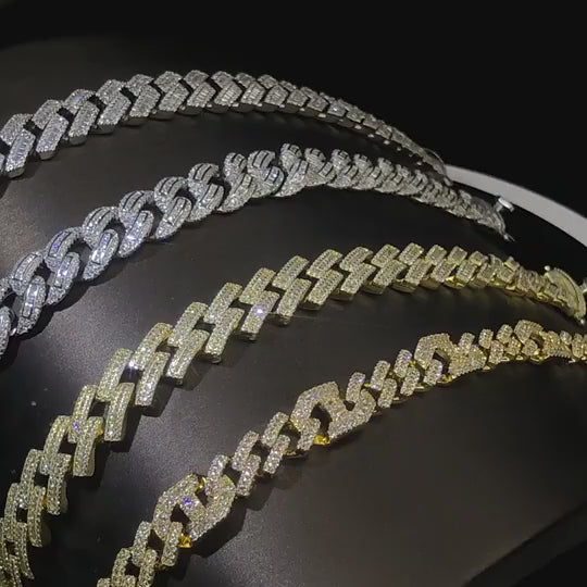 Each link is a sculptural marvel, encrusted with premium Moissanite stones that rival the brilliance of diamonds, igniting with fire under every light.