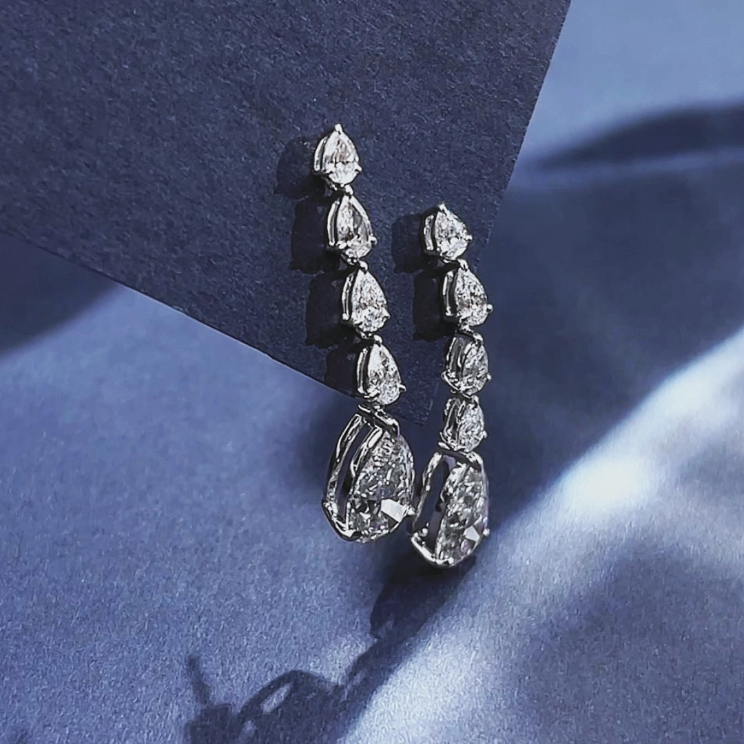 A symphony of sparkle and silhouette — these drop earrings capture the essence of elegance in motion. Each earring features a graceful vertical arrangement of five pear-shaped lab-grown diamonds, culminating in a larger teardrop gem that sways like a falling star.