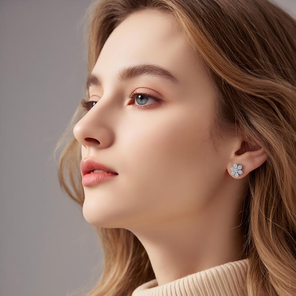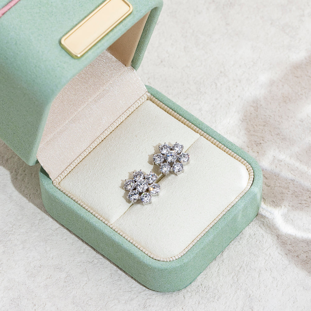 A celebration of symmetry and sparkle, the Ecoe-804 | Bloom of Light earrings capture the essence of nature's quiet elegance. Inspired by the geometry of snowflakes and the grace of blooming petals, each stud is a radiant constellation of light—designed to illuminate the wearer with timeless charm.