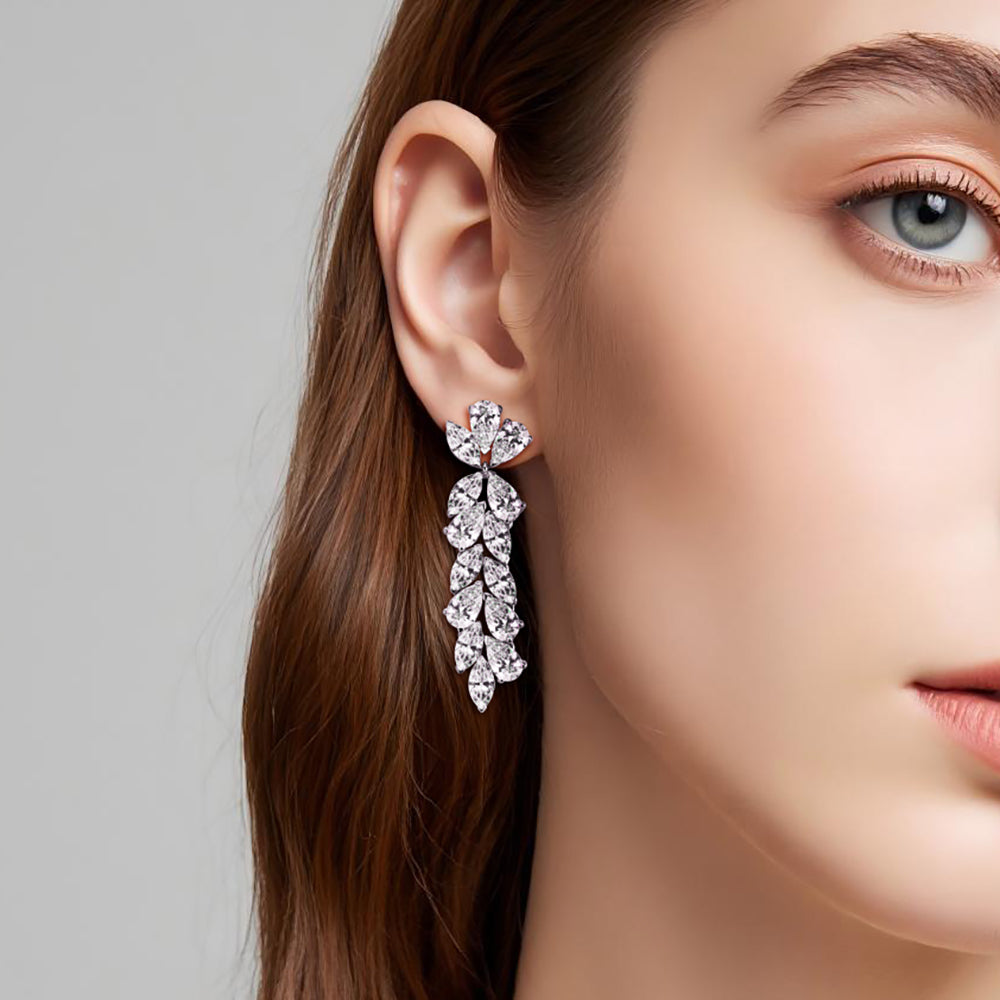 Nature never shoutsโit whispers. The Ecoe-805 | Whispering Leaves of Light earrings are an ode to that quiet elegance, where every curve and sparkle evokes the rustle of wind through jeweled foliage. Inspired by the organic symmetry of leaves and the brilliance of moonlit gardens, these earrings cascade like poetry in motion.