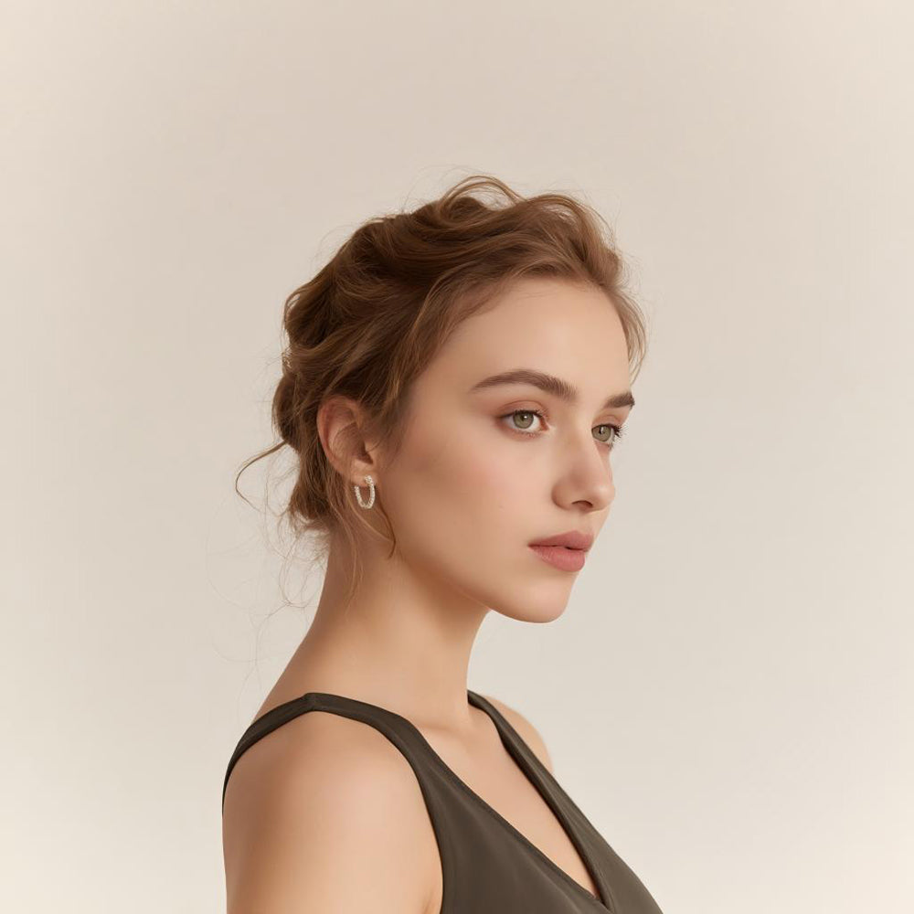 The earrings are secured with a precision-engineered clasp, ensuring comfort and durability. Their medium size makes them ideal for both everyday wear and elevated occasions—graceful enough for a gala, subtle enough for a morning meeting.