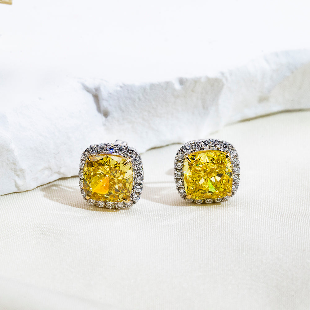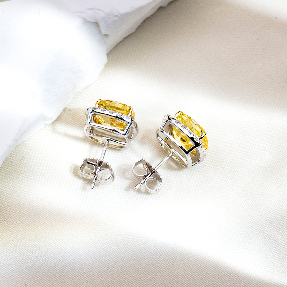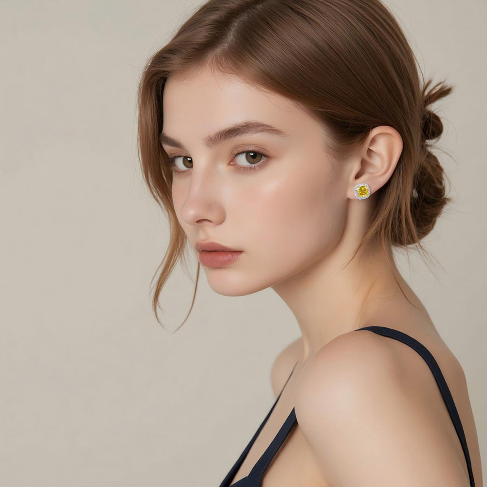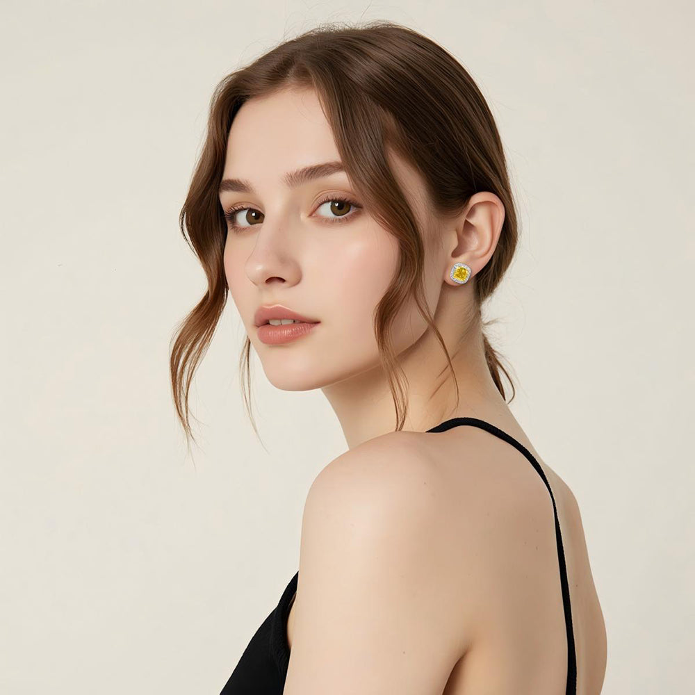 Like the first golden light that kisses the horizon, the Ecoe-807 | Sunlit Reverie earrings radiate warmth, clarity, and timeless grace. Each stud features a cushion-cut lab-created fancy yellow diamond, its vibrant hue reminiscent of sunlight captured in crystal.