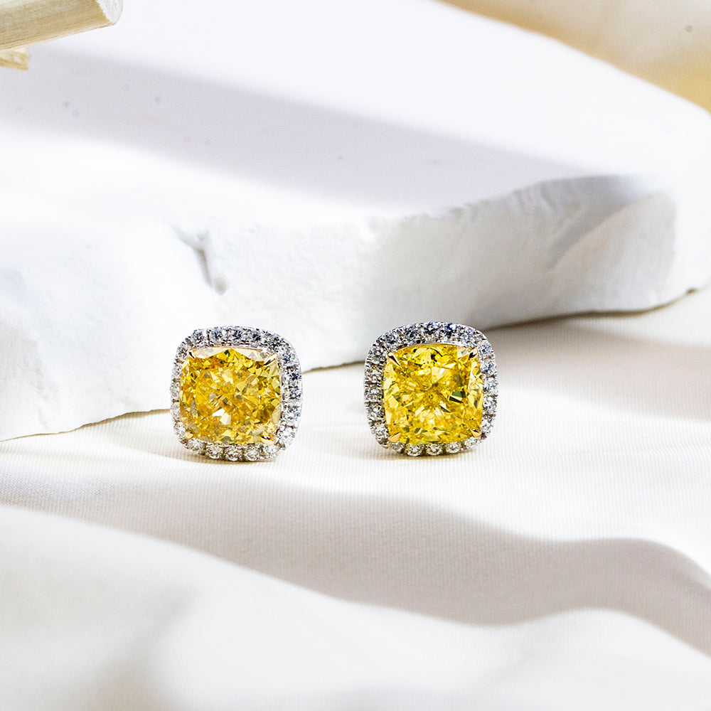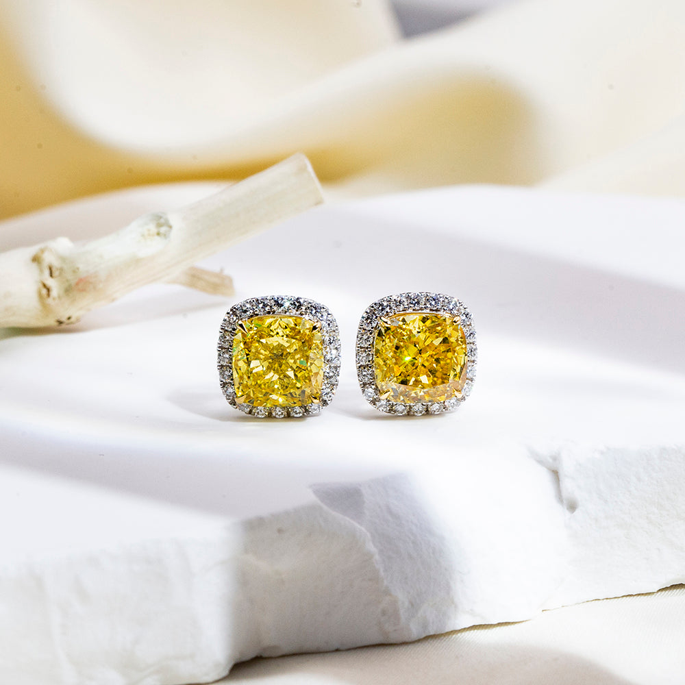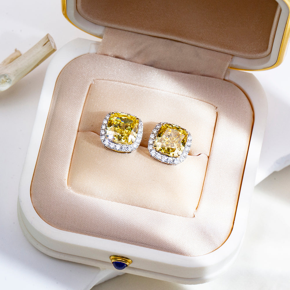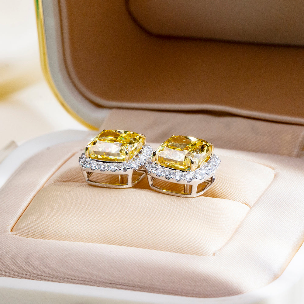 Like the first golden light that kisses the horizon, the Ecoe-807 | Sunlit Reverie earrings radiate warmth, clarity, and timeless grace. Each stud features a cushion-cut lab-created fancy yellow diamond, its vibrant hue reminiscent of sunlight captured in crystal.