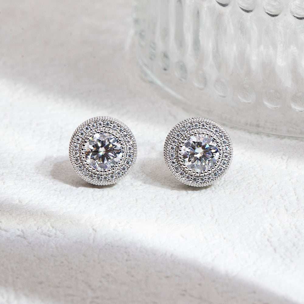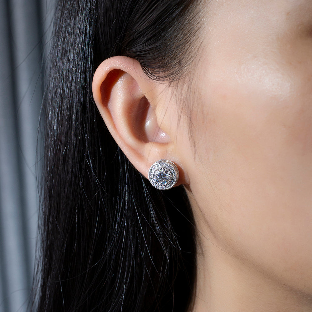 A star at the center of its own galaxy—Ecoe-809 | Celestial Bloom captures the quiet majesty of light in orbit. Each earring features a round brilliant-cut lab-grown diamond at its heart, encircled by a halo of smaller lab-grown diamonds, creating a radiant bloom of sparkle and symmetry.