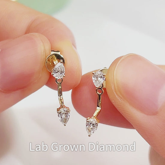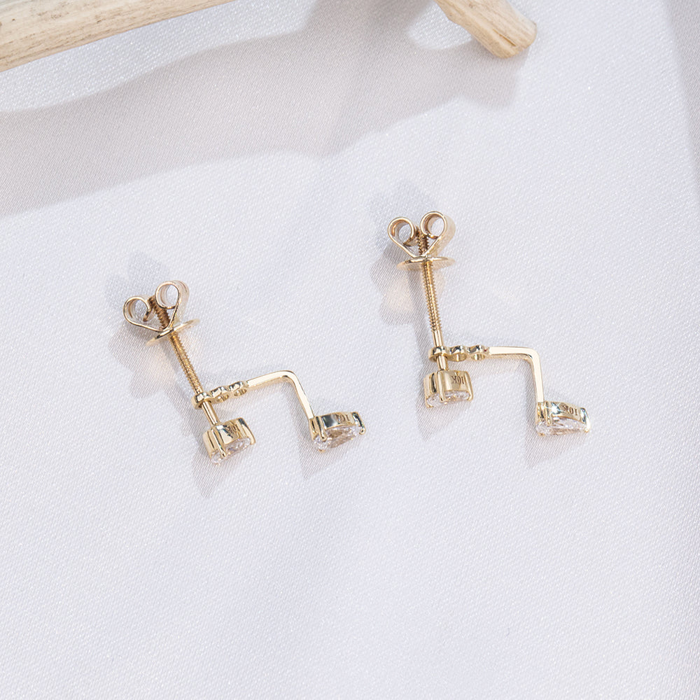 Like light captured mid-fall, the Ecoe-828 | Drops of Clarity earrings distill elegance into its purest form. Each earring features a pear-cut lab-grown diamond, delicately suspended from a polished gold bar that evokes both architectural precision and organic flow.