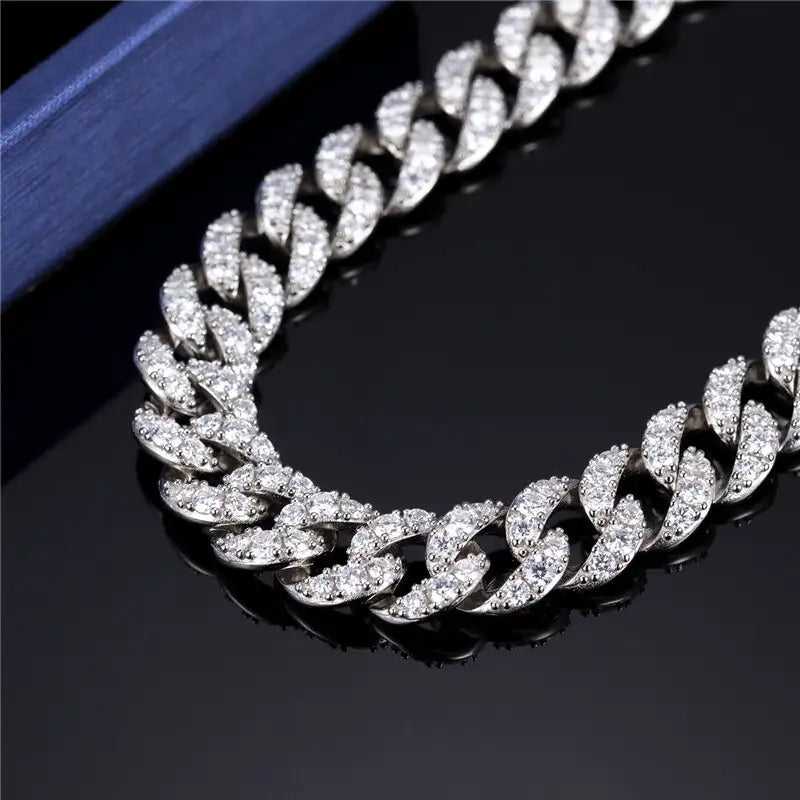Turn heads and elevate your style with Ecogemma's signature Cuban link chain—where luxury meets conscience. Crafted from premium 925 sterling silver and encrusted with high-grade moissanite stones, this 10mm wide necklace delivers unmatched brilliance and boldness in every link.