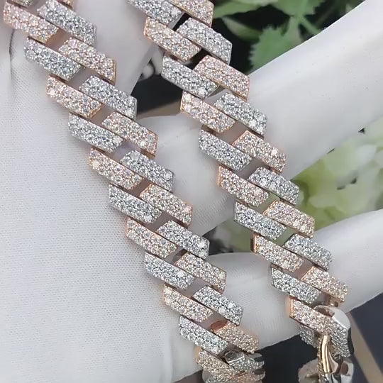 📧 Request Custom PriceUnleash bold elegance with the Harley-518—Ecogemma's signature iced-out Cuban link chain designed for those who lead with style and substance. Featuring a striking blend of silver and rose gold tones, each interlocking link is meticulously pavé-set with brilliant lab-grown moissanite stones, delivering diamond-like fire without compromise.