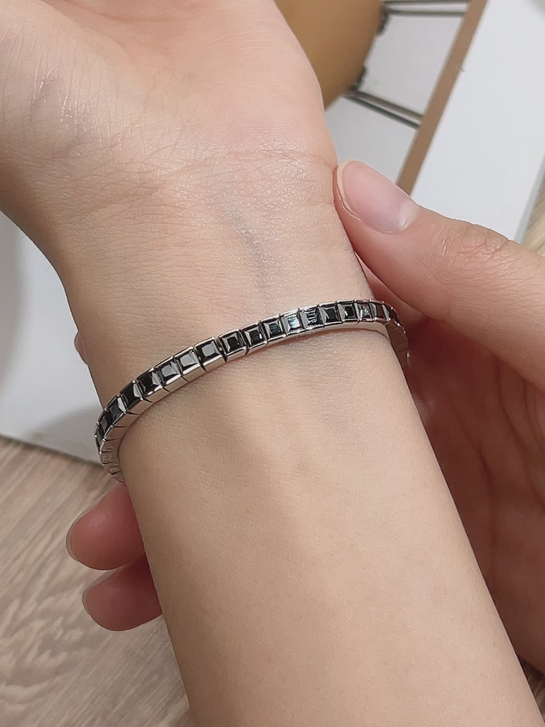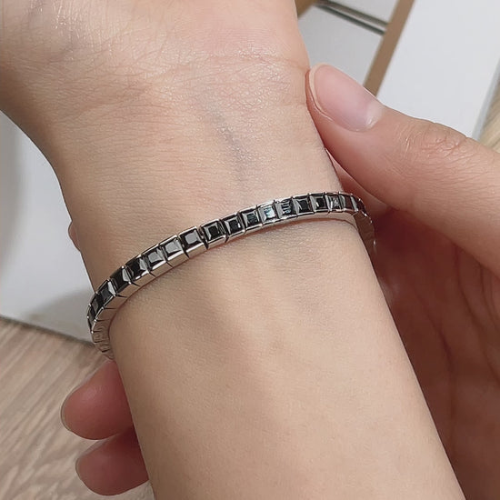 The Ecob-592 NoirEdge Bracelet is a bold reinterpretation of classic elegance. Each square link is sculpted from 18K white gold, polished to a mirror-like sheen, and inlaid with a lab-grown diamond or customizable gemstone—a quiet rebellion against traditional luxury, crafted with conscience and clarity.
