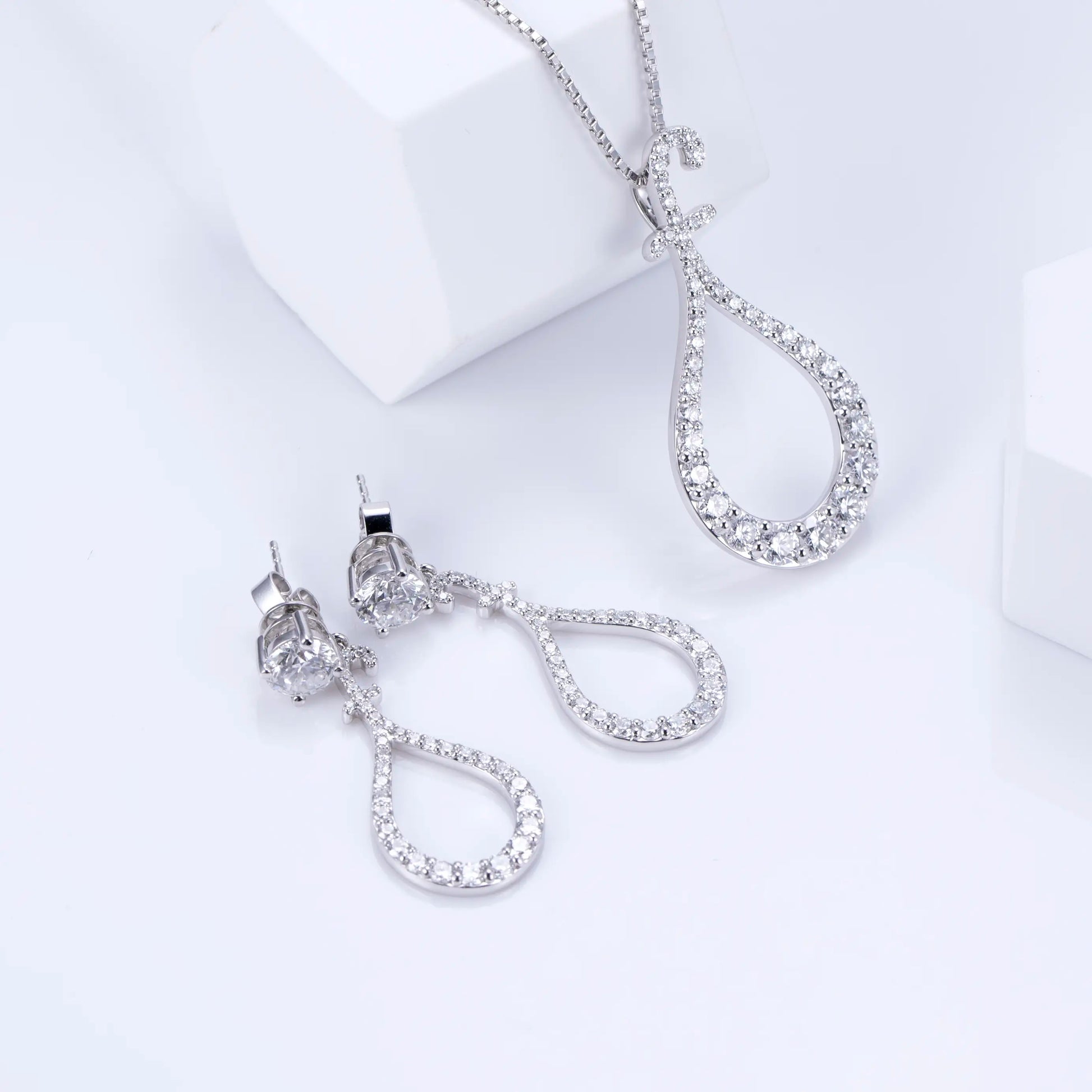 Econ-758 is a sculptural ode to elegance—a teardrop-shaped pendant necklace that evokes the fluidity of light and the grace of motion. The pendant features a sweeping silhouette, reminiscent of a flame or a falling droplet, encrusted with lab-grown diamonds that shimmer with every breath.