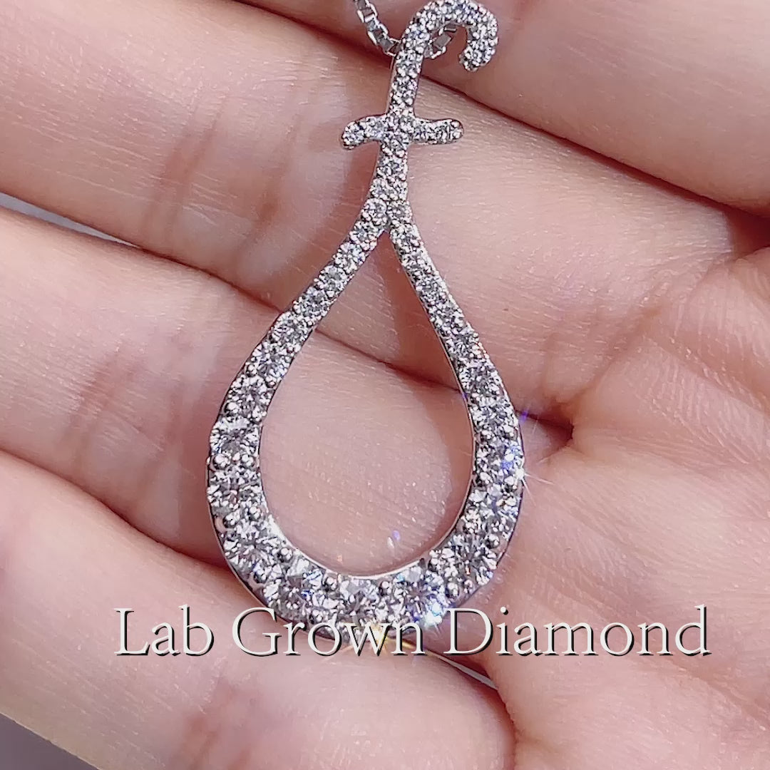 Crafted in 18K white gold, the pendant is suspended from a refined box chain, offering a clean and modern profile. Each diamond is ethically grown, conflict-free, and selected for its FG color and VS clarity, ensuring exceptional brilliance and purity.