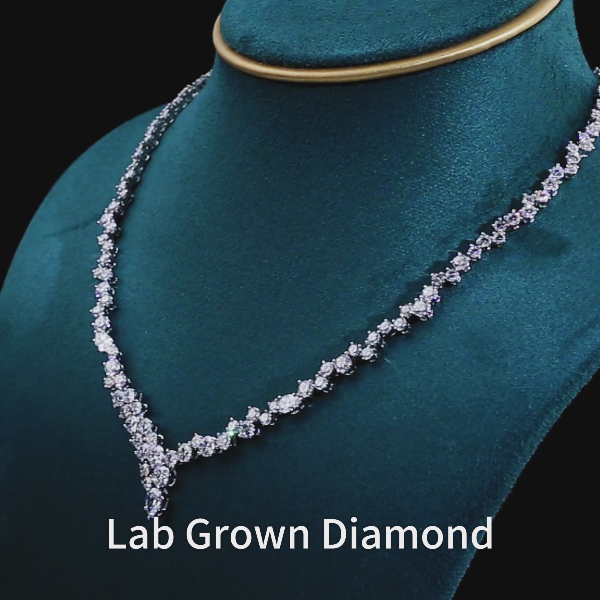 Crafted in 18K white gold, the necklace can be customized in 14K rose gold, 18K yellow gold, or platinum. Each stone is IGI certified, conflict-free, and grown in a laboratory with zero environmental compromise.