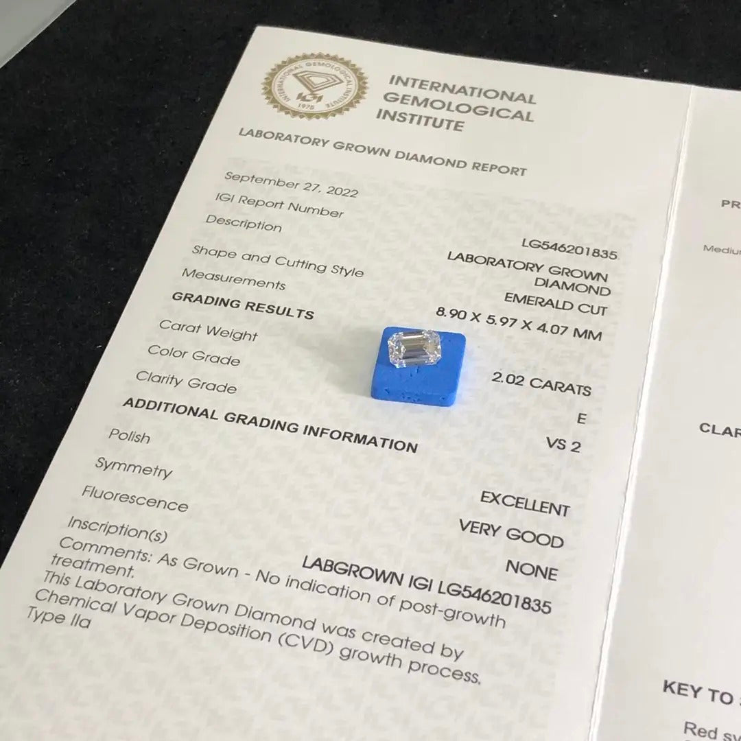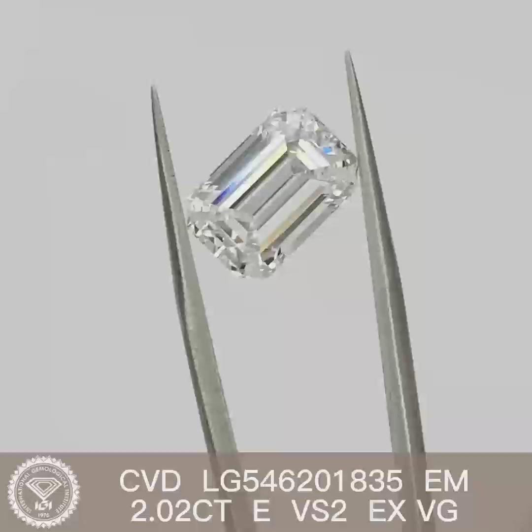 Emerald Cut 2.02ct E VS2 CVD Lab Grown Diamond IGI Certificate LG546201835