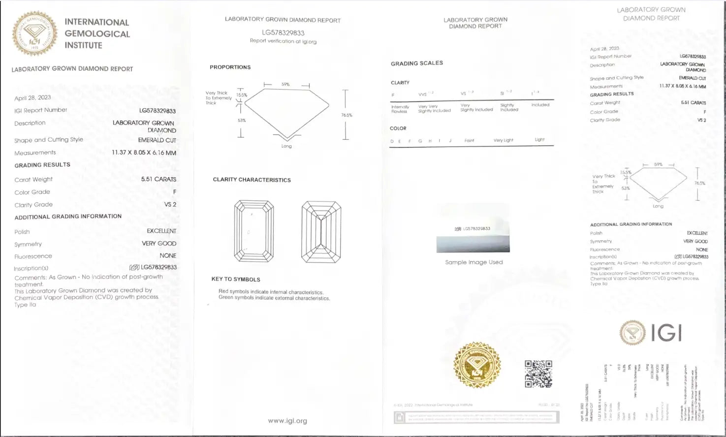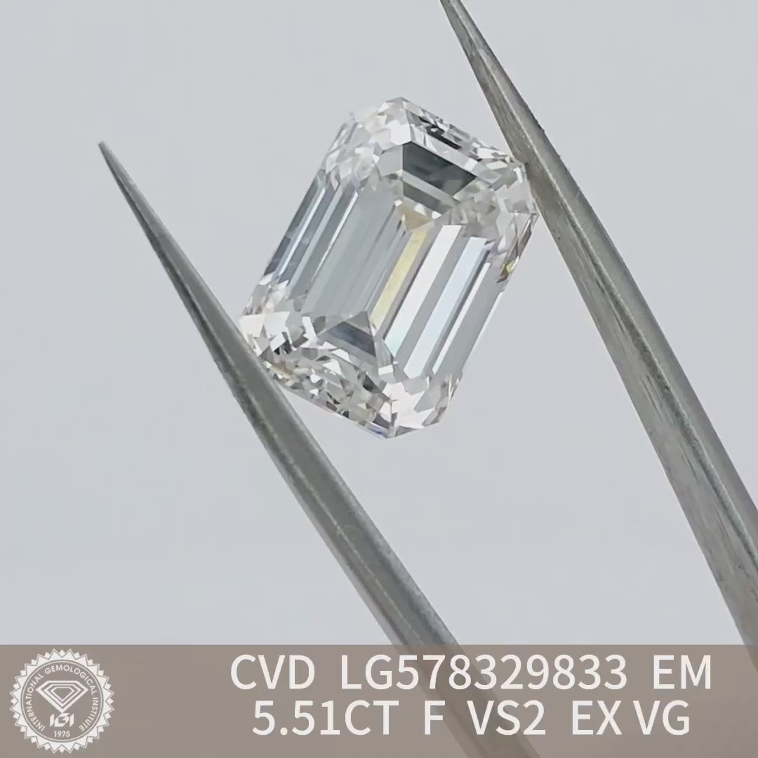 Emerald Cut 5.5ct F VS2 CVD Lab Grown Diamond IGI Certificate LG578329833