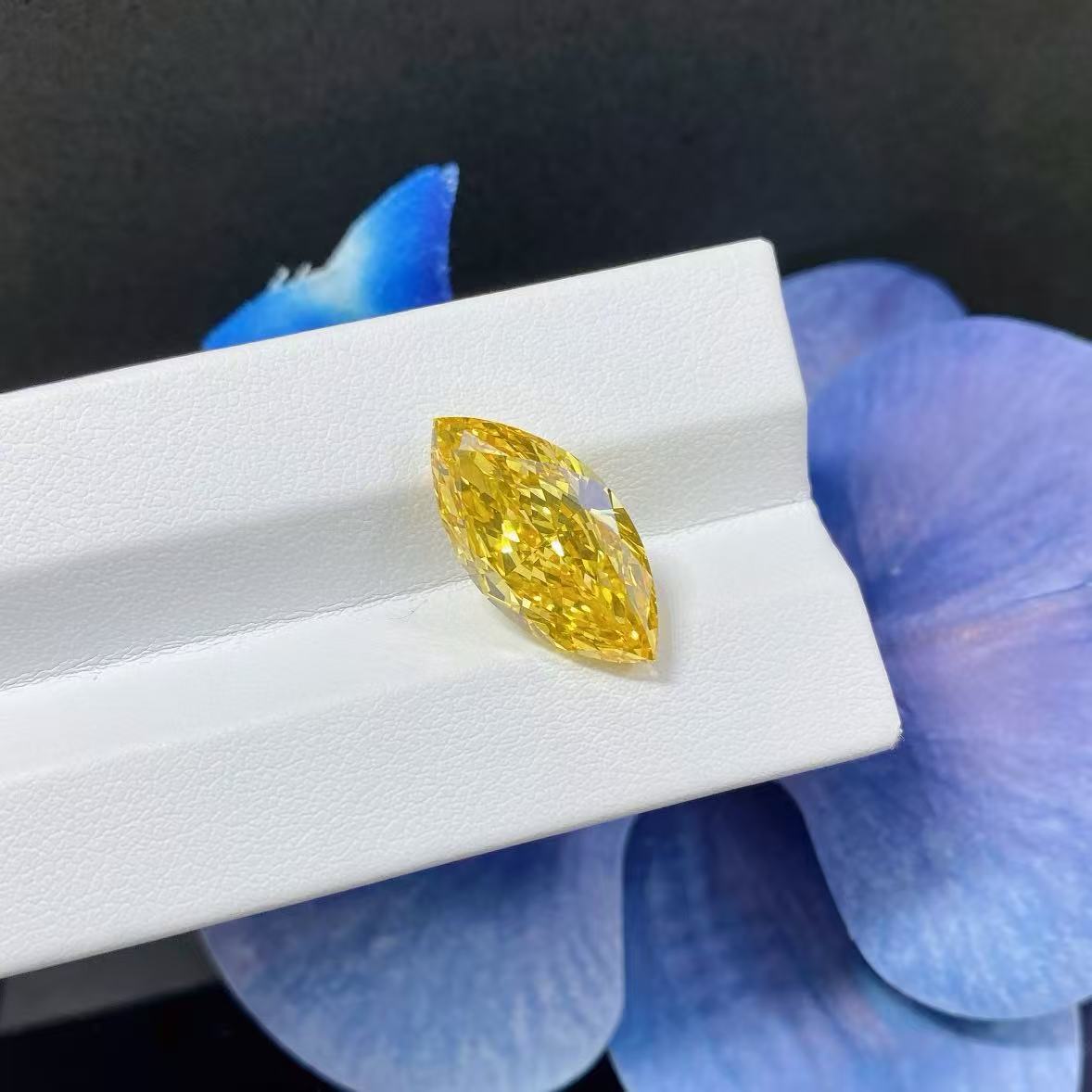 Ecogemma leads the world in sustainable colored diamond innovation, specializing in the creation of extraordinary yellow diamonds through eco-friendly production methods. Our advanced capabilities encompass the entire color spectrum - from classic whites to rare fancy colors like this exceptional Vivid Yellow, in sizes up to 30 carats. Whether you're seeking a unique marquise masterpiece or perfectly matched pairs, our cutting-edge technology and master craftsmanship ensure precision, brilliance, and unwavering environmental integrity in every golden stone.