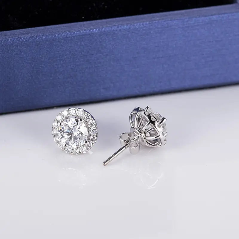 Elevate everyday elegance with the Ecogemma Double Radiance Studs. Each earring features a 0.83-carat round brilliant lab-grown diamond (D-color, VS2 clarity, 3EX cut) as its centerpiece, surrounded by a scintillating halo of pavé-set natural diamonds. Crafted in lustrous 18K white gold, these studs transform light into a mesmerizing dance of fire and brilliance.