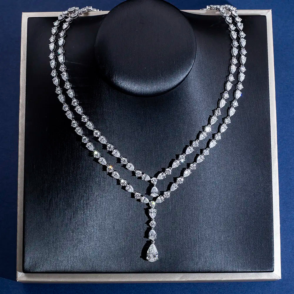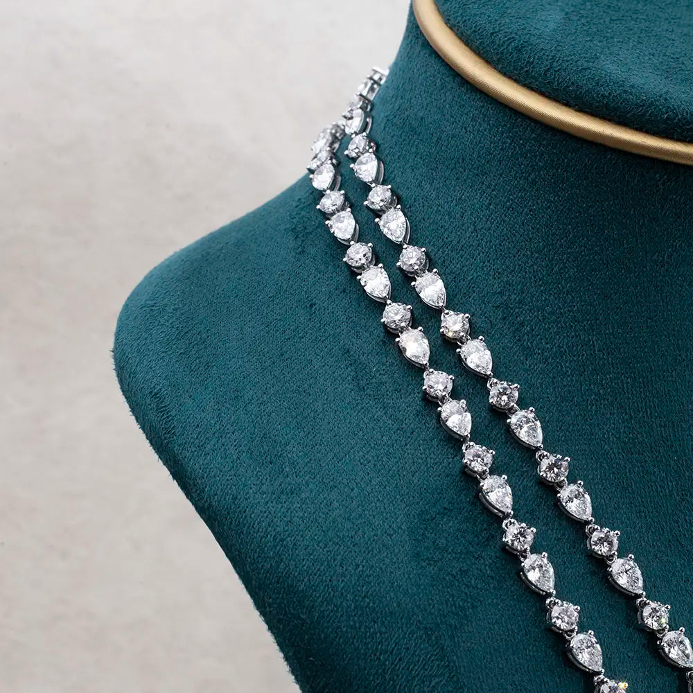 Introducing the Ecogemma-853 Couture Trilogy β a symphony of over 160 ethically grown diamonds masterfully set across three coordinated pieces. Handcrafted in radiant 18K white gold, this exclusive set merges timeless luxury with modern conscience, featuring a cascading tennis necklace, celestial chandelier earrings, and a statement cocktail ring. Every diamond β from brilliant rounds to teardrop pears β dances with IGI-certified fire, curated for those who define elegance.