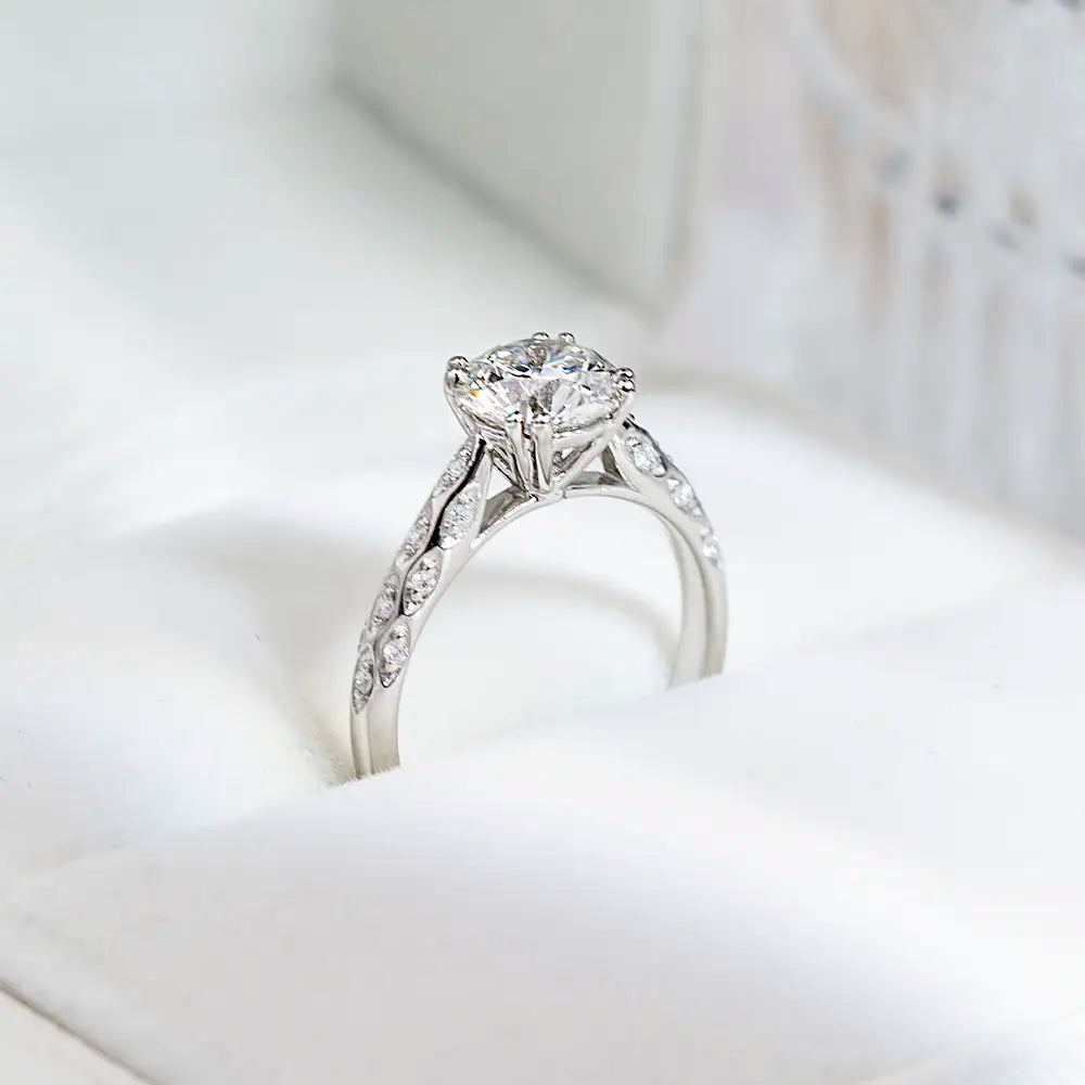 Experience the pinnacle of luxury with our exquisite Platinum PT950 Solitaire Ring. This masterpiece features a stunning 1.5-carat round lab-grown diamond as the centerpiece, beautifully complemented by elegant marquise-cut side stones that enhance the ring's brilliance and sophistication.