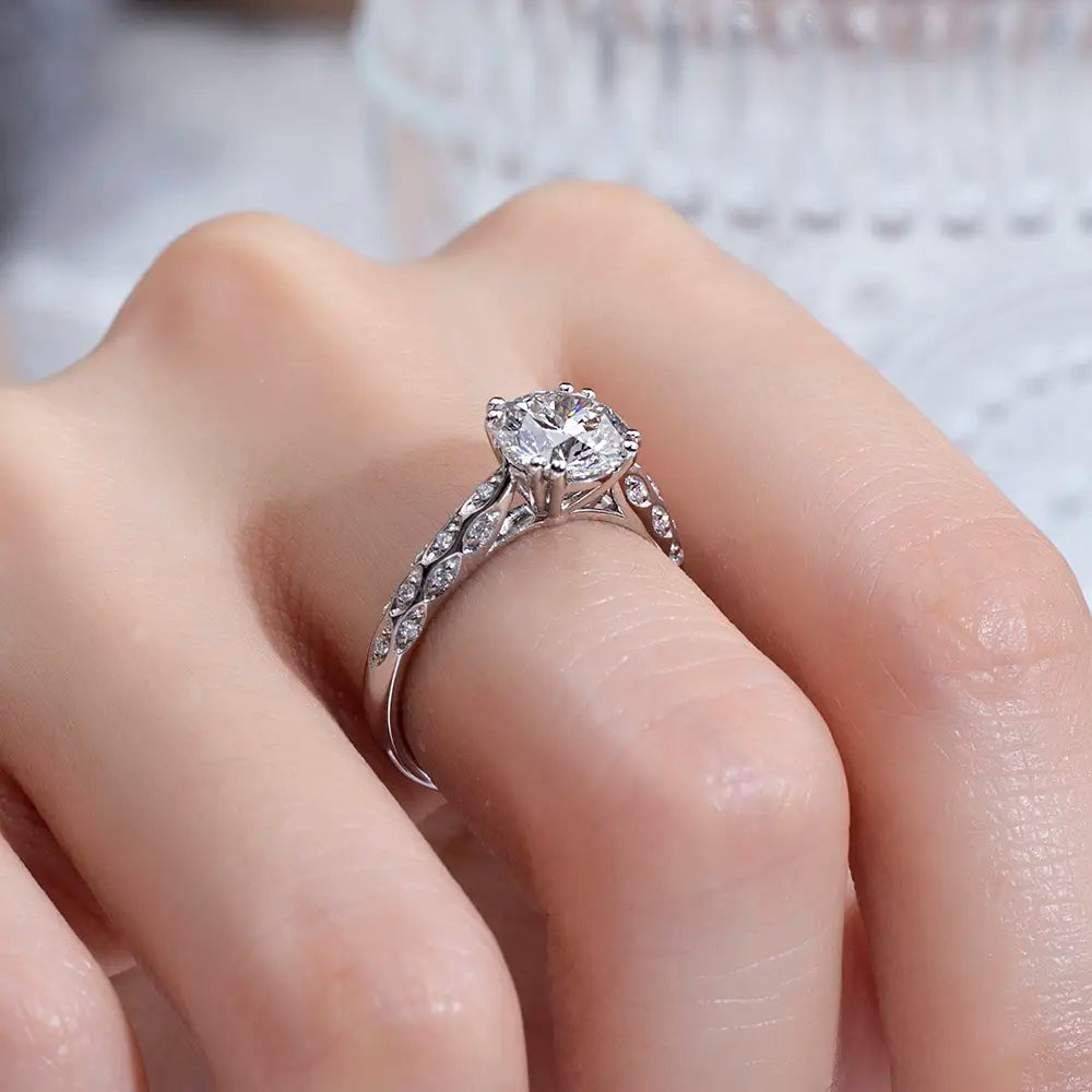 Platinum PT950 Solitaire Ring | 1.5ct Round Lab-Grown Diamond w/ Marquise Side Stones | IGI Certified