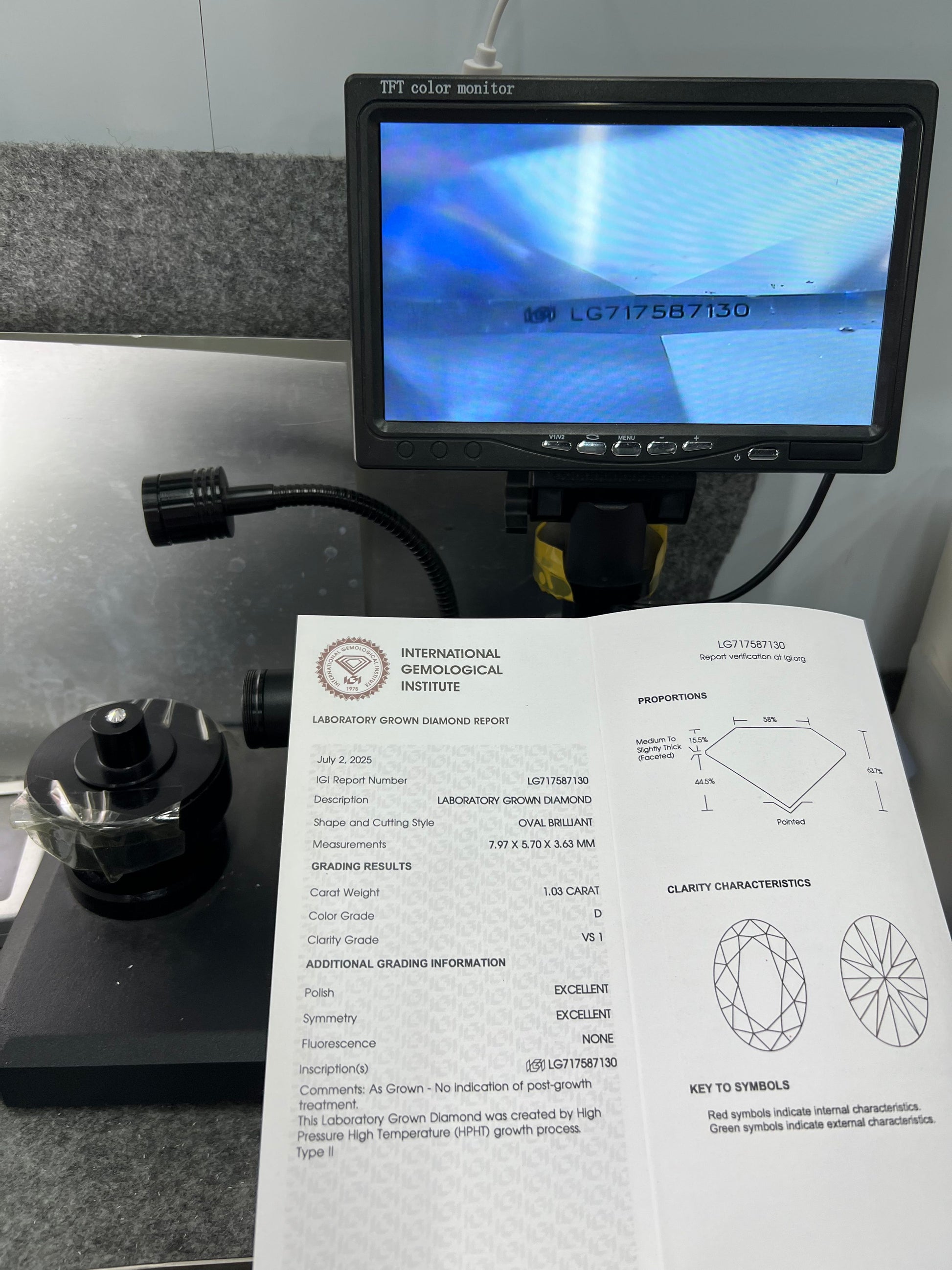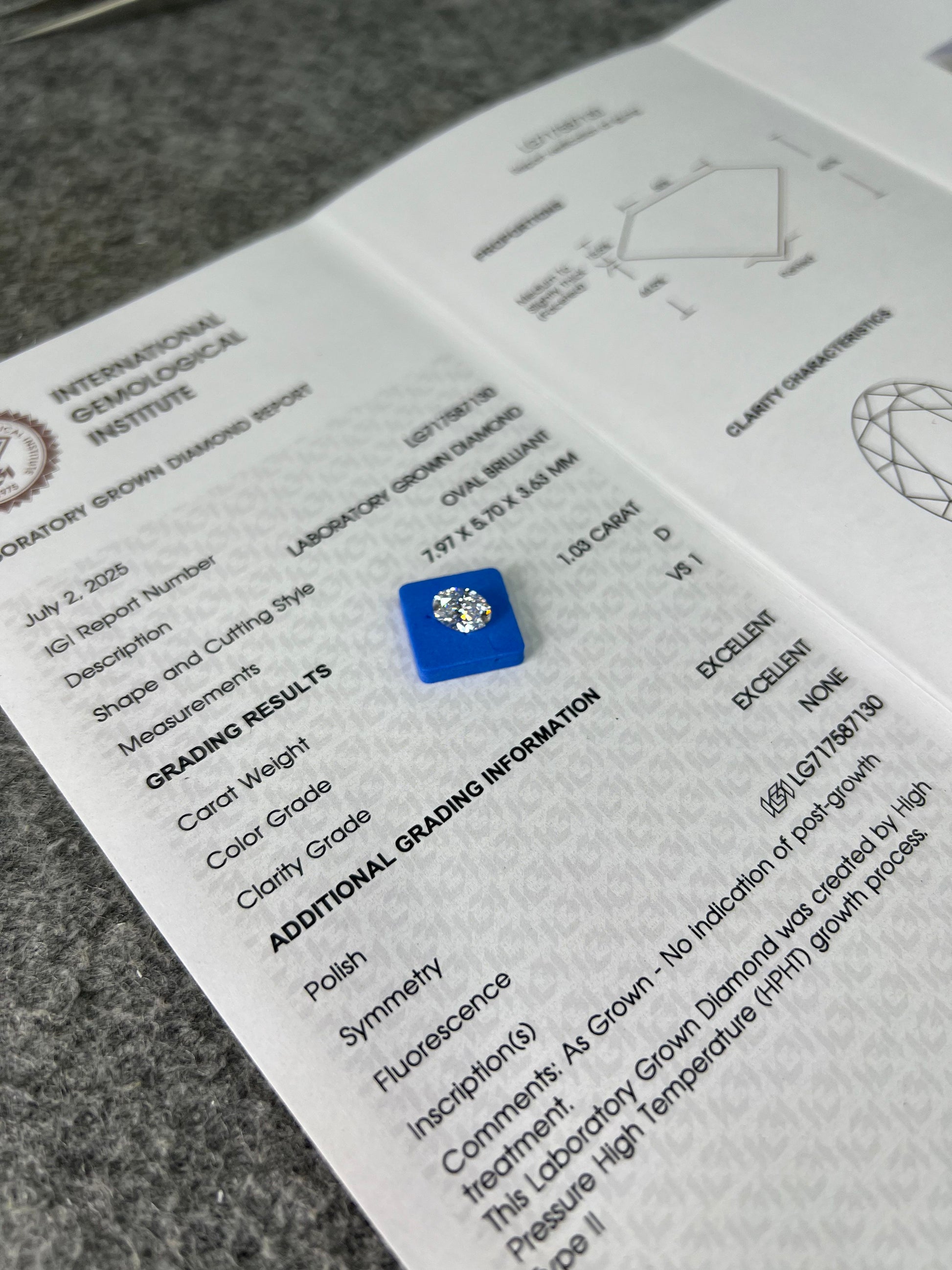 Oval Brilliant D VS1 EX 1.03ct HPHT Lab Grown Diamond with IGI Certificate LG717587130