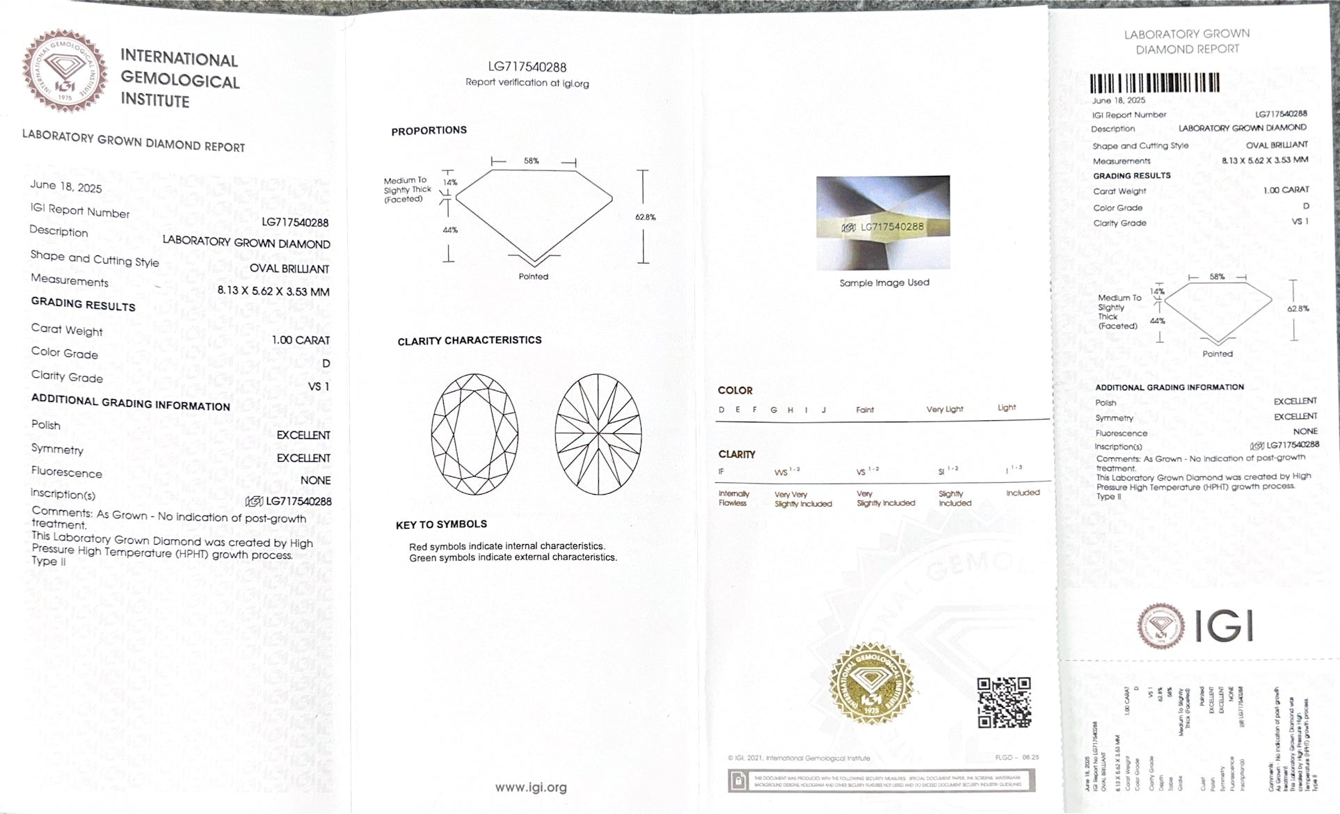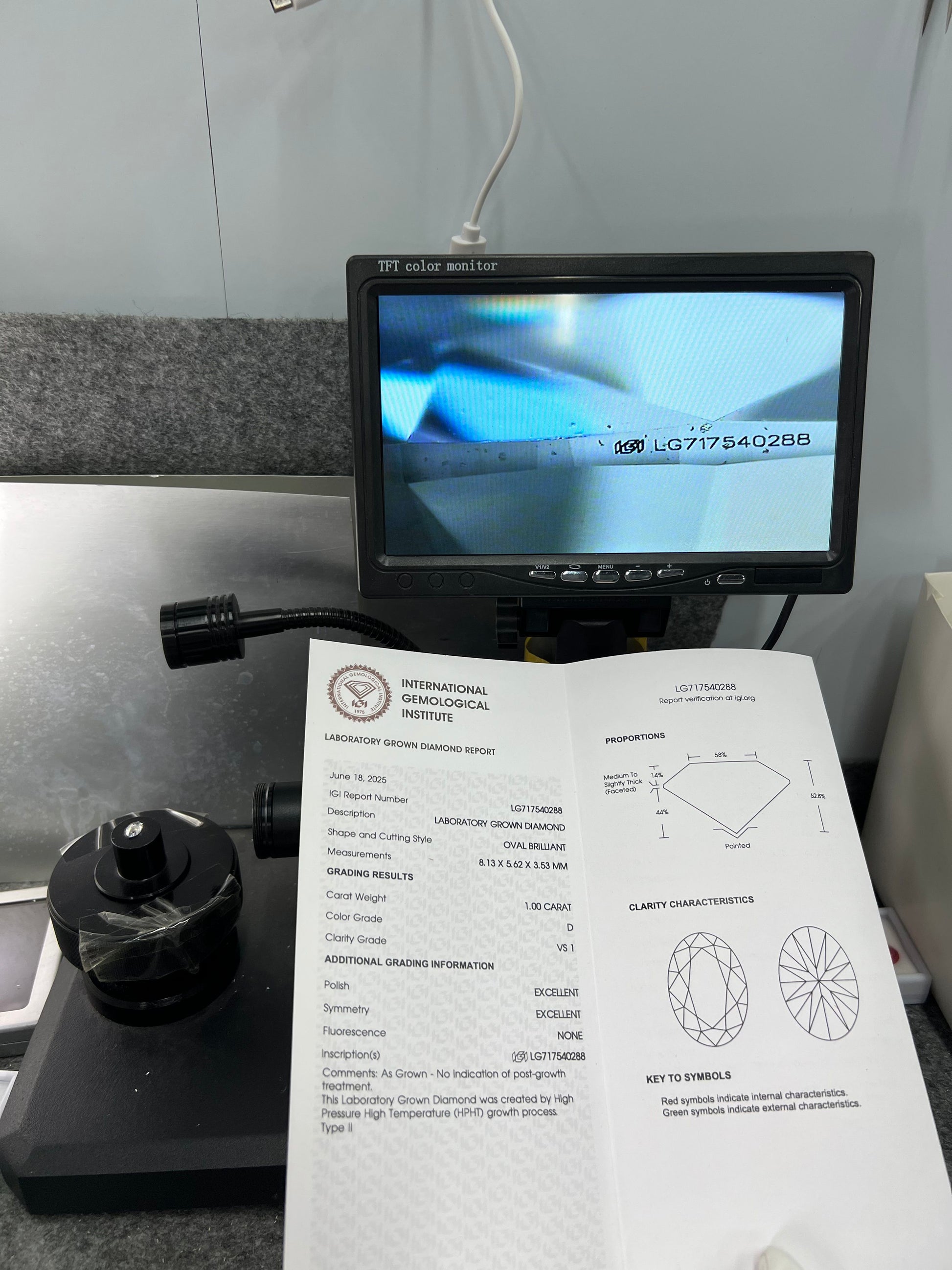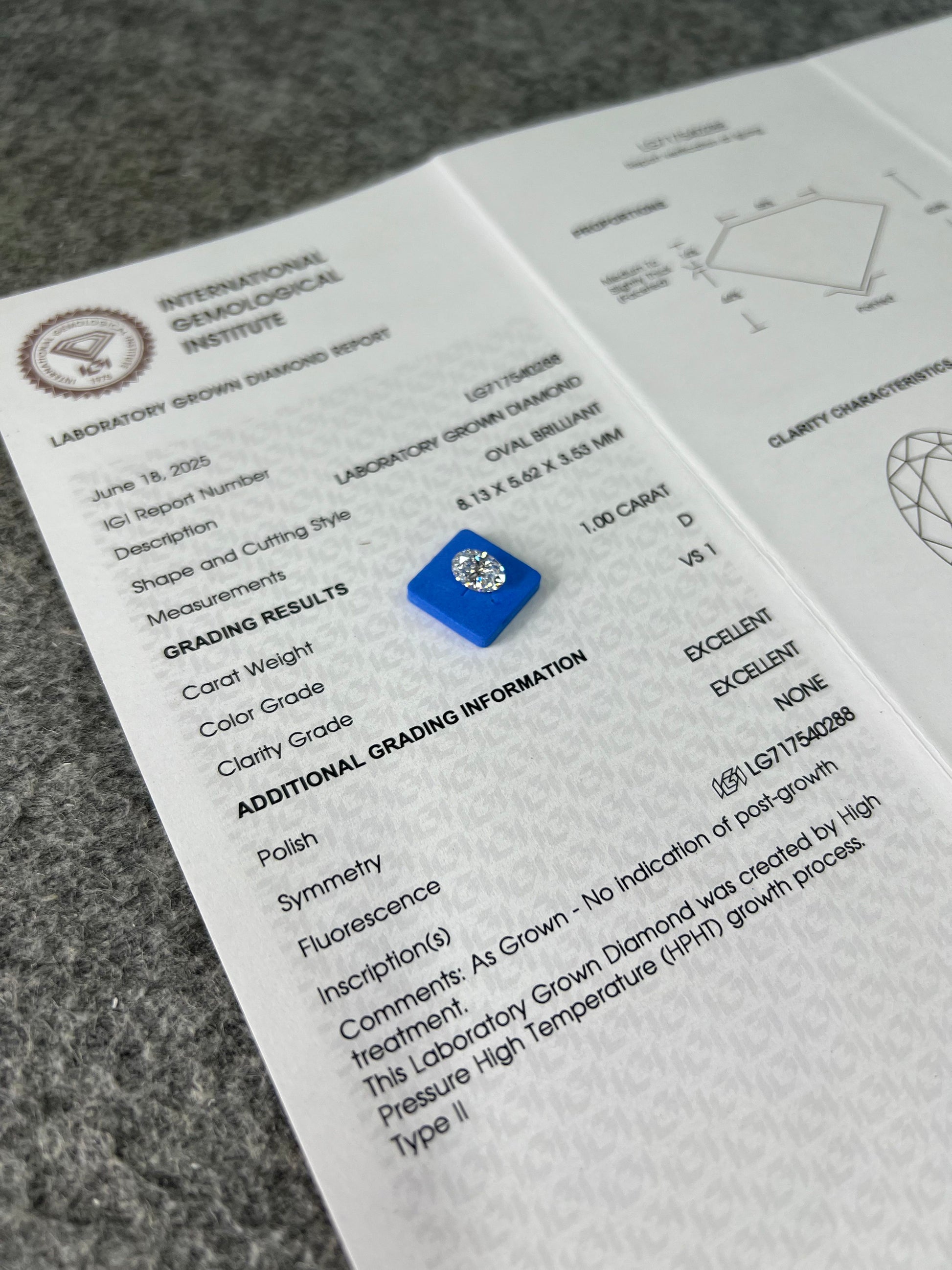 Oval Brilliant D VS1 EX 1.0 ct HPHT Lab Grown Diamond with IGI Certificate LG717540288