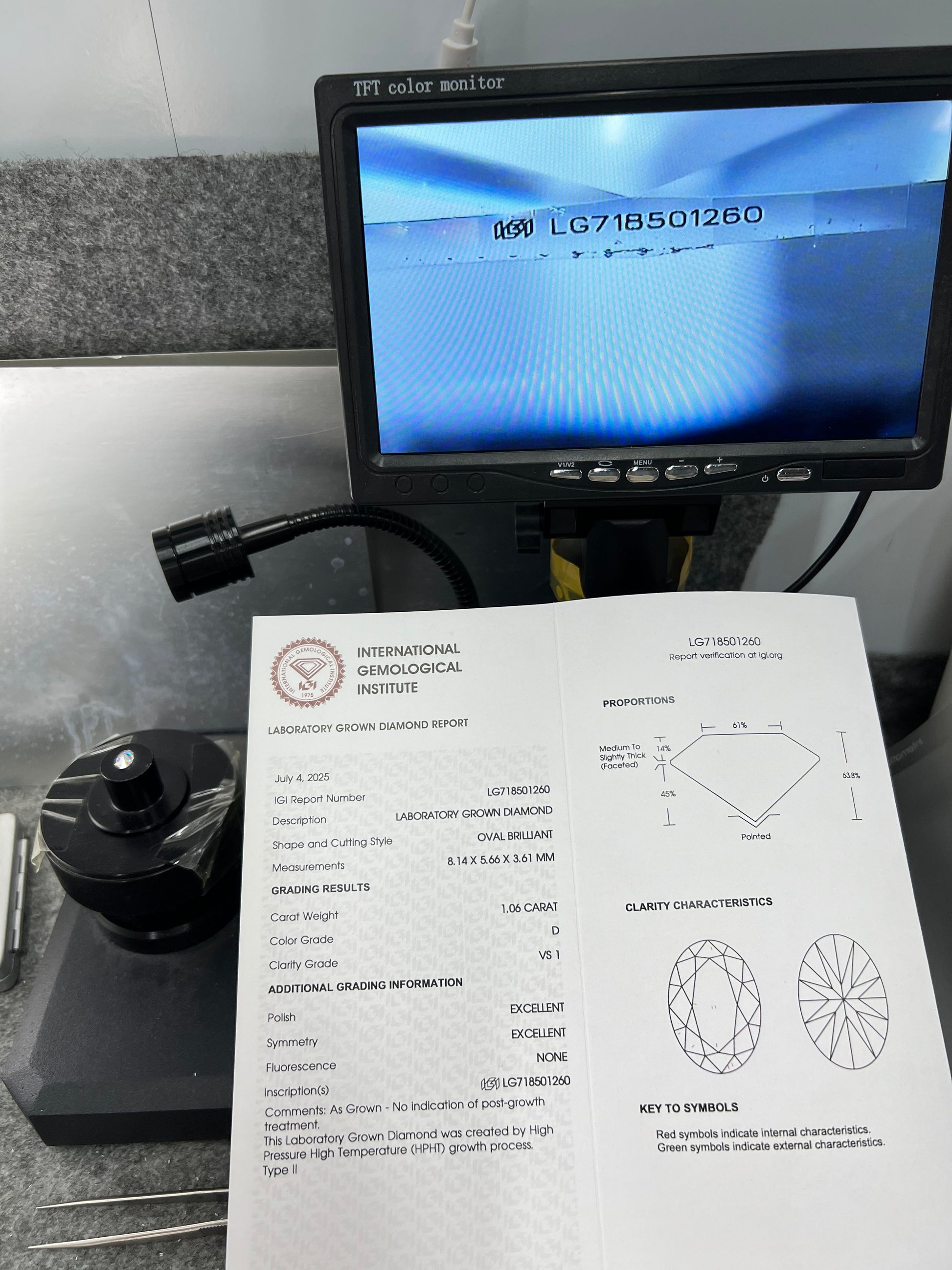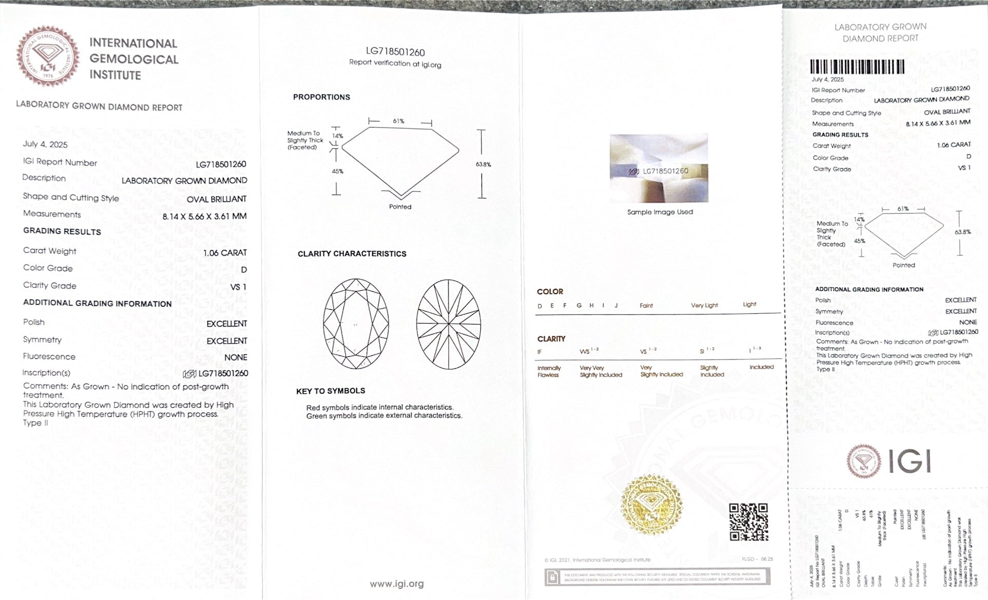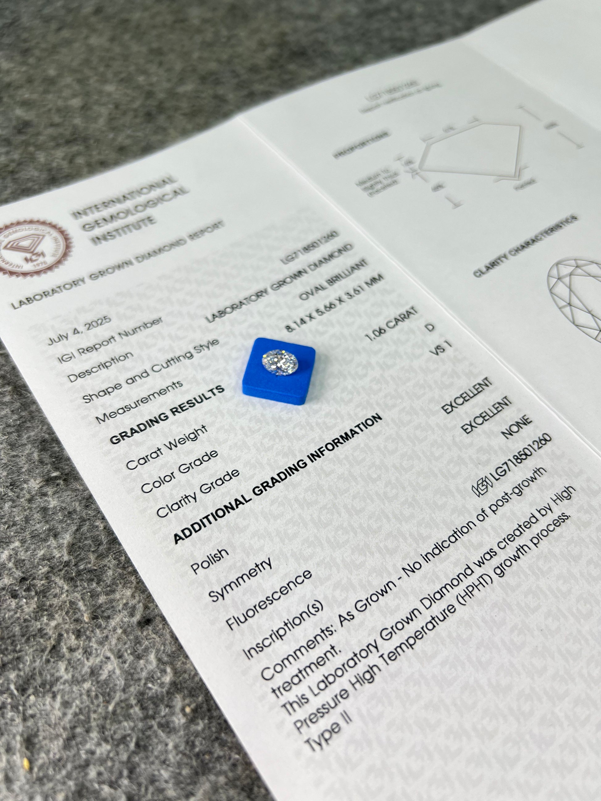 Oval Cut 1.06ct D VS1 HPHT Diamond Lab Grown Diamond IGI Certificate LG718501260