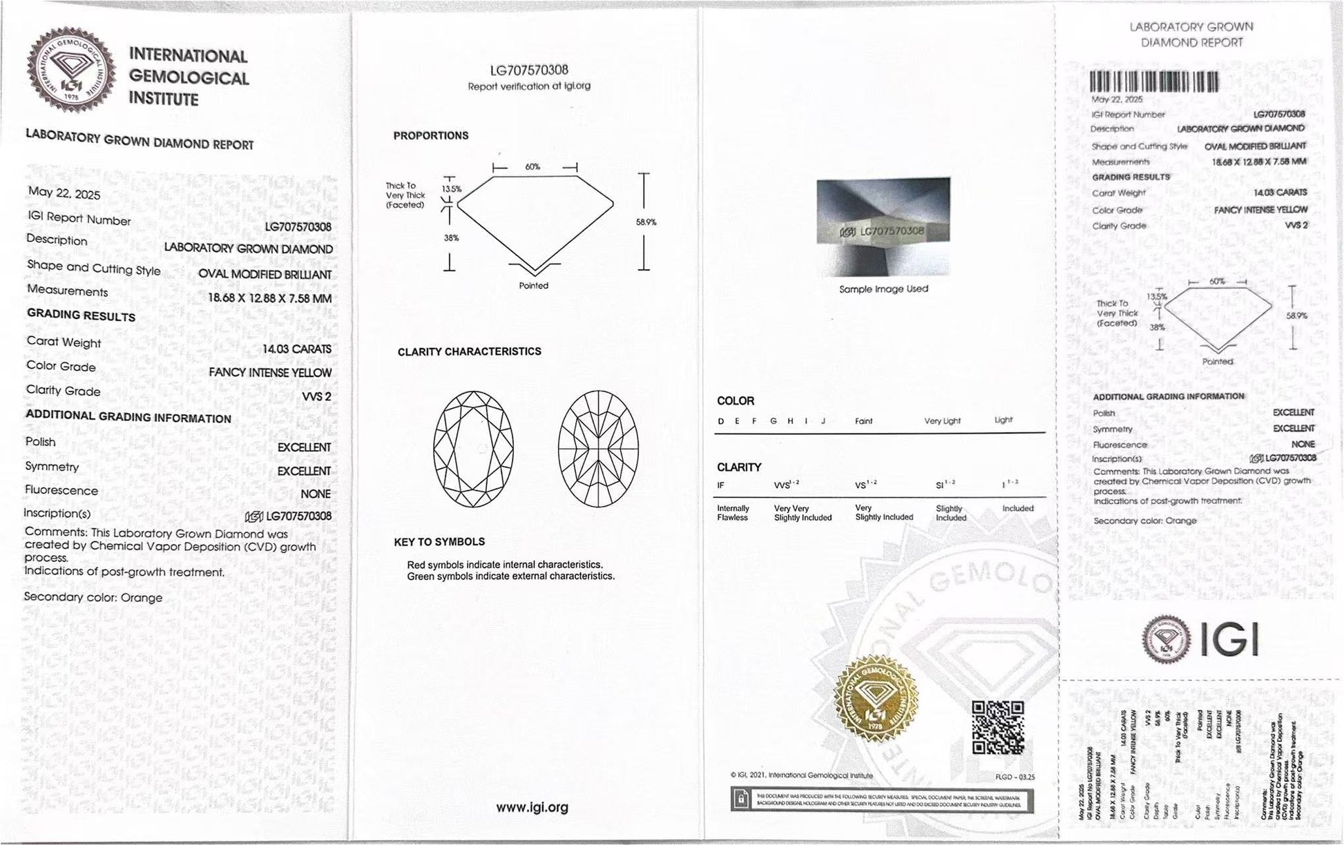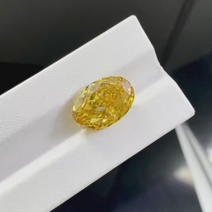 Oval Cut 14.03ct Fancy Intense Yellow VVS2 CVD Lab Grown Diamond IGI Certificate LG707570308