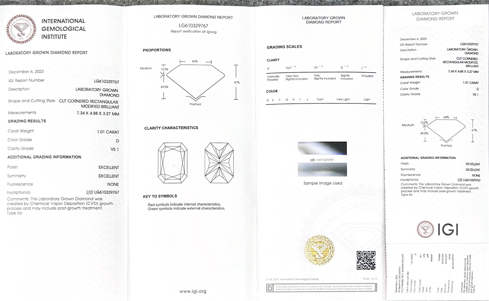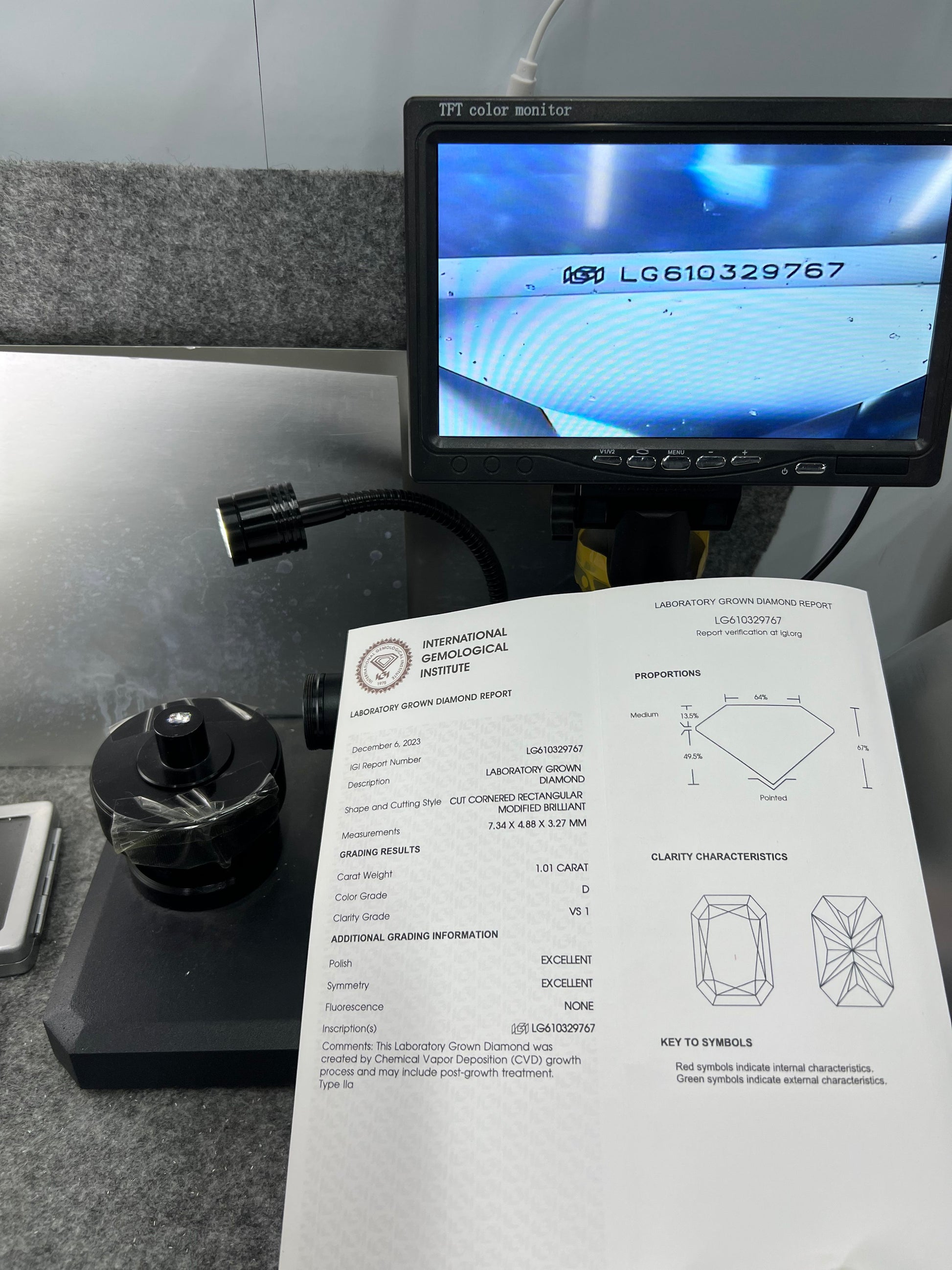 Discover the perfect blend of luxury and sustainability with our exceptional 1.01-carat radiant lab-grown diamond. Crafted using advanced CVD technology with zero environmental impact, this diamond delivers the same stunning brilliance as mined diamonds while preserving our planet's natural beauty.