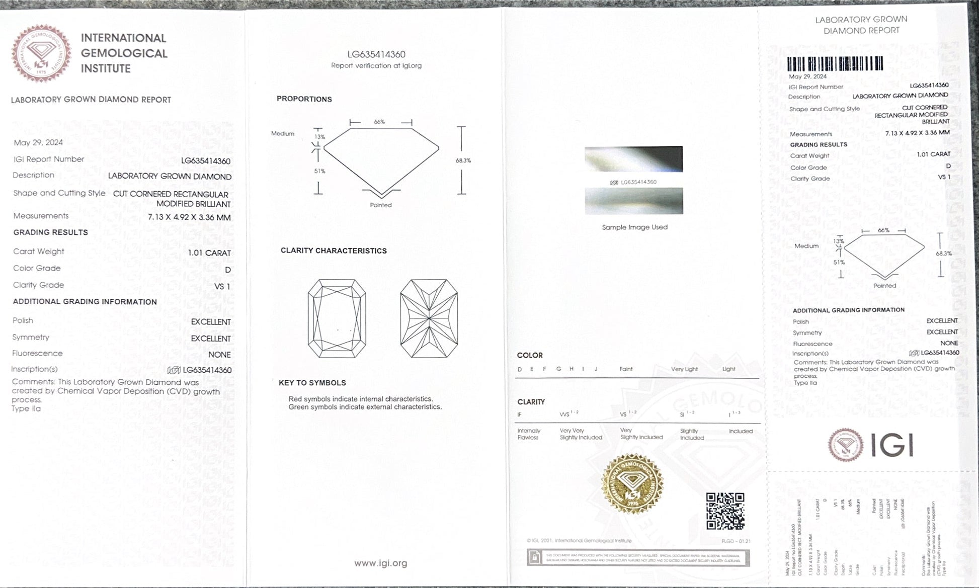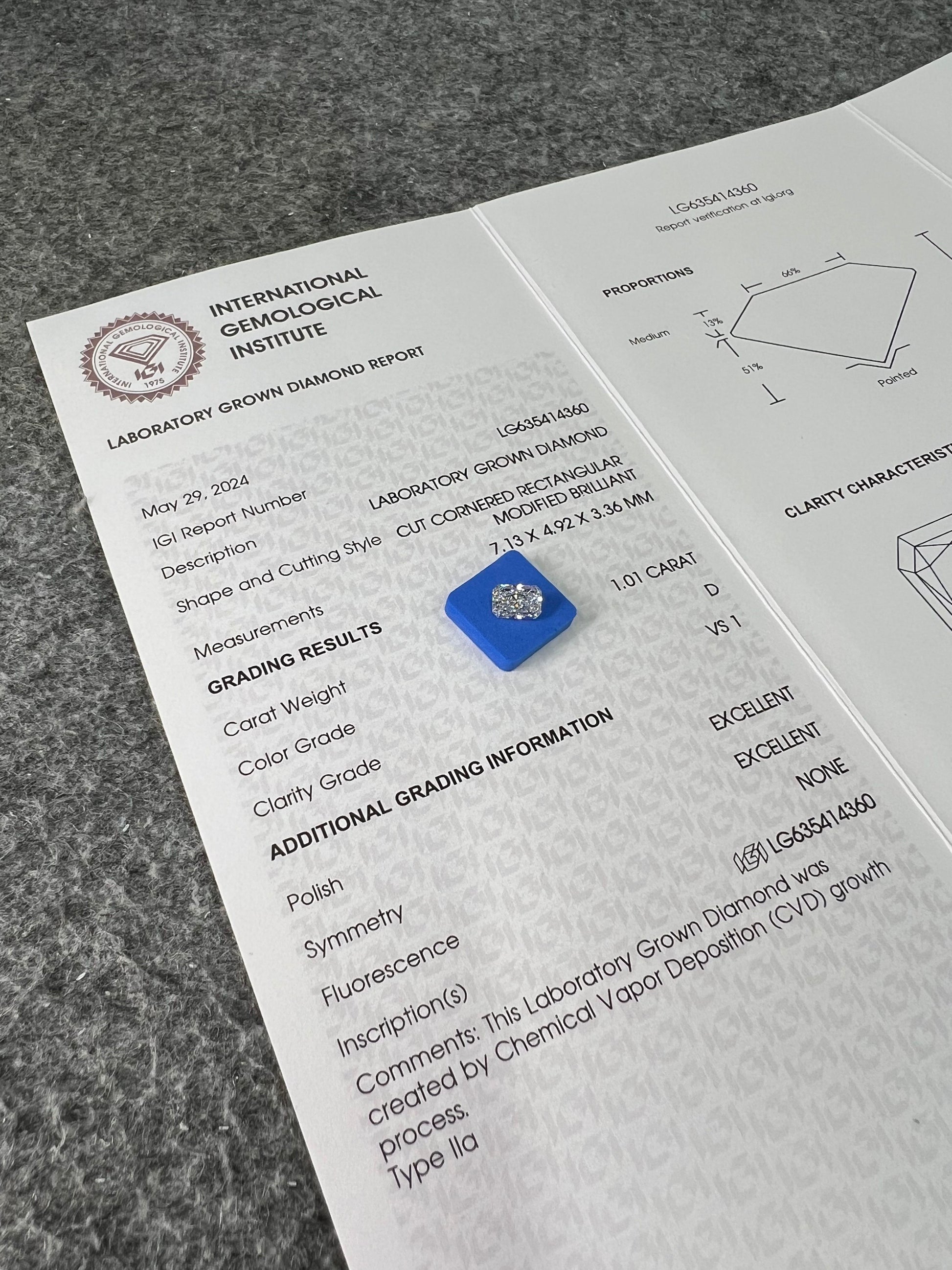 Radiant D VS1 EX EX 1.01ct CVD Lab Grown Diamond with IGI Certificate LG 635414360