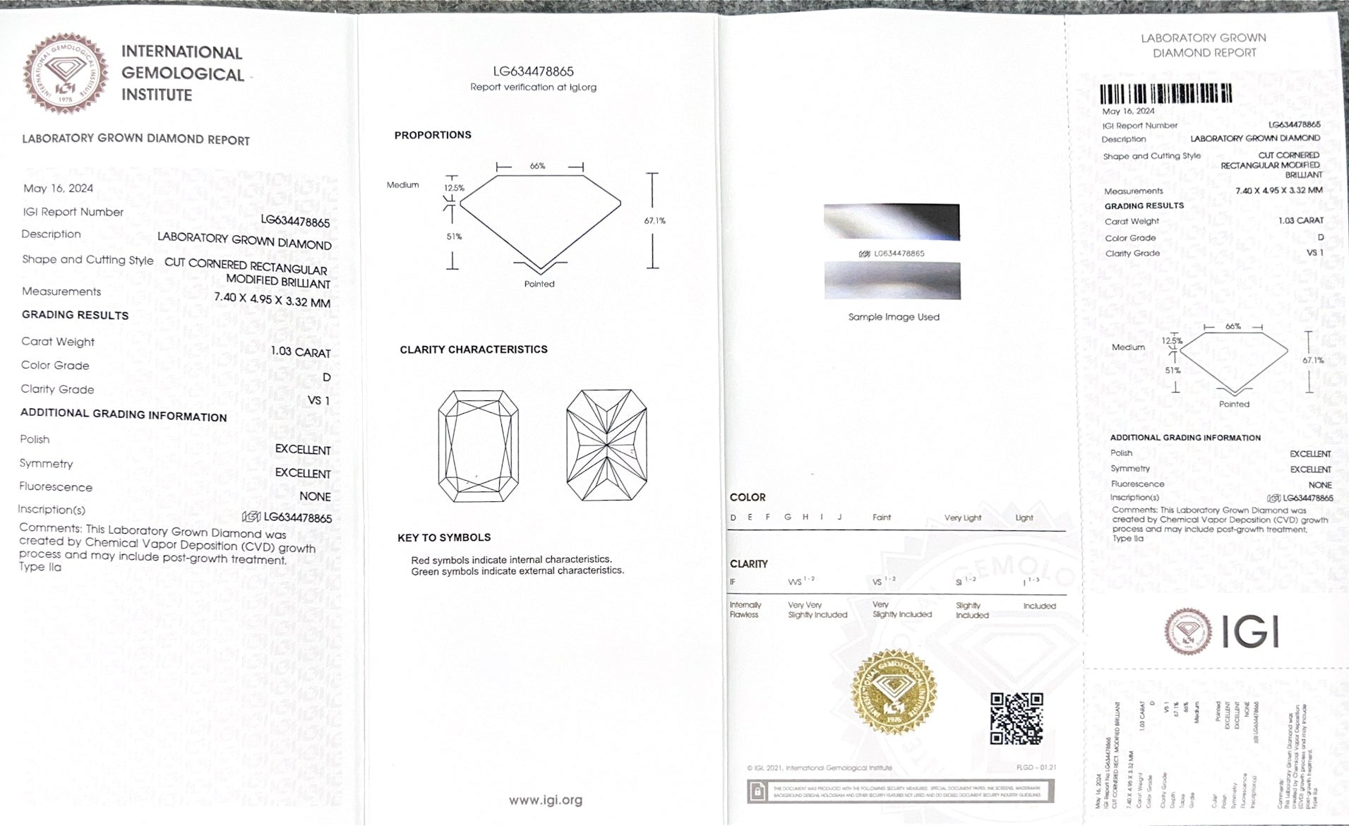 Please Note: Our lab-grown diamond inventory and pricing fluctuate daily based on global demand and availability. For the most accurate and up-to-date stock and quotations for this exceptional D VS1 radiant diamond, we kindly invite you to contact us directly.