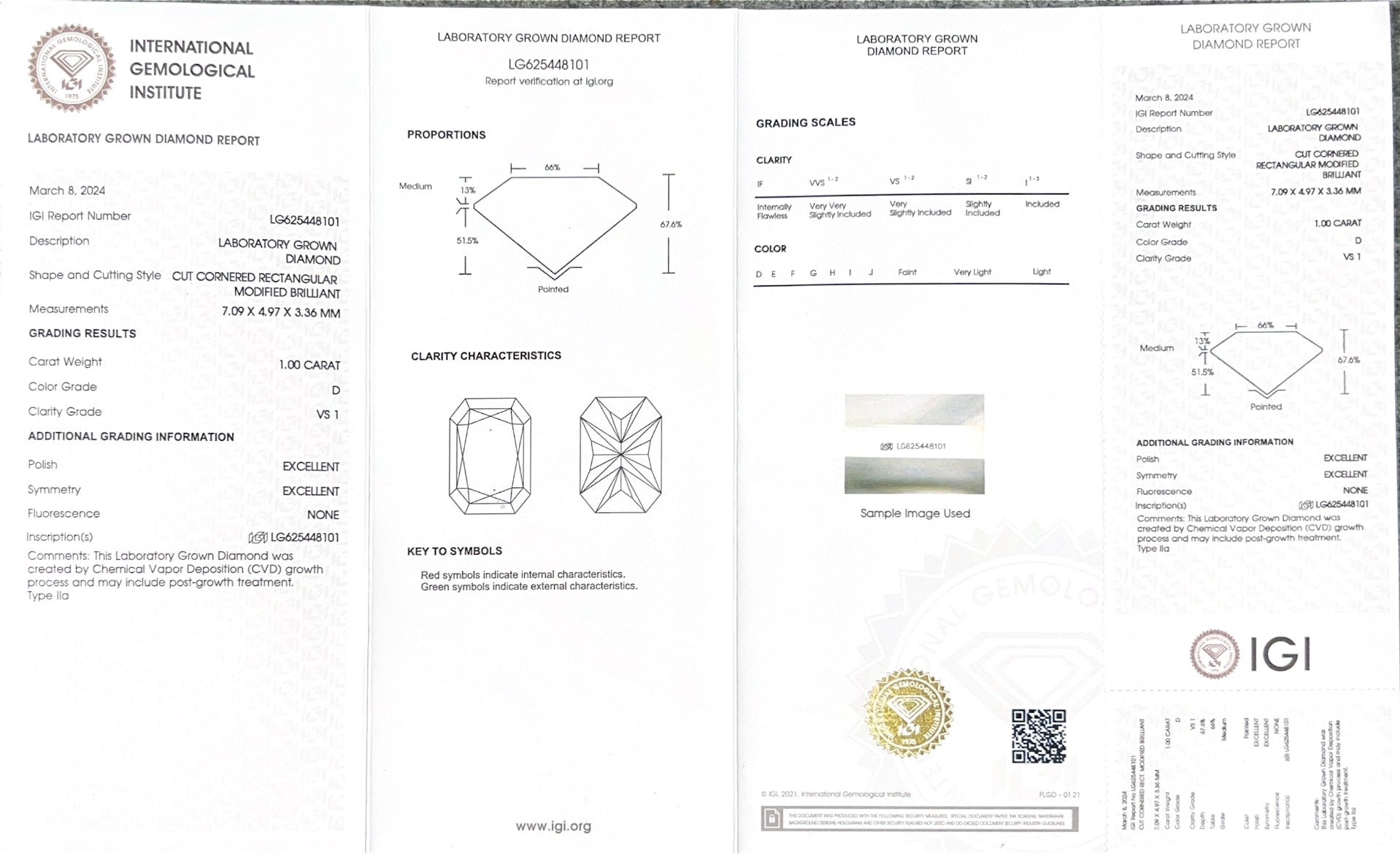 Radiant D VS1 EX EX 1ct CVD Lab Grown Diamond with IGI Certificate LG625448101