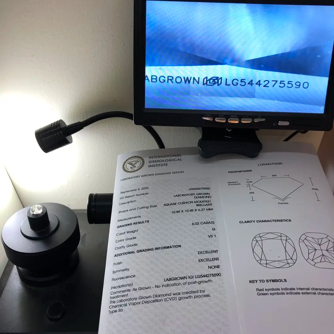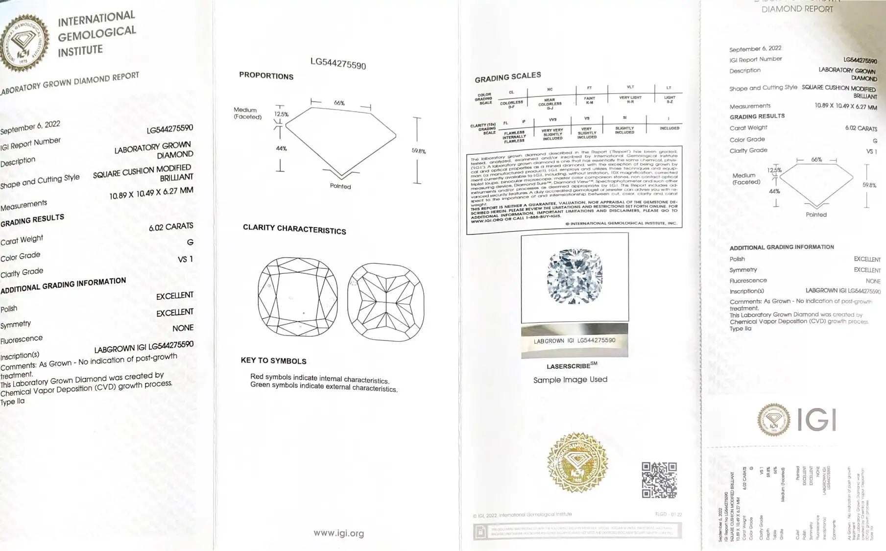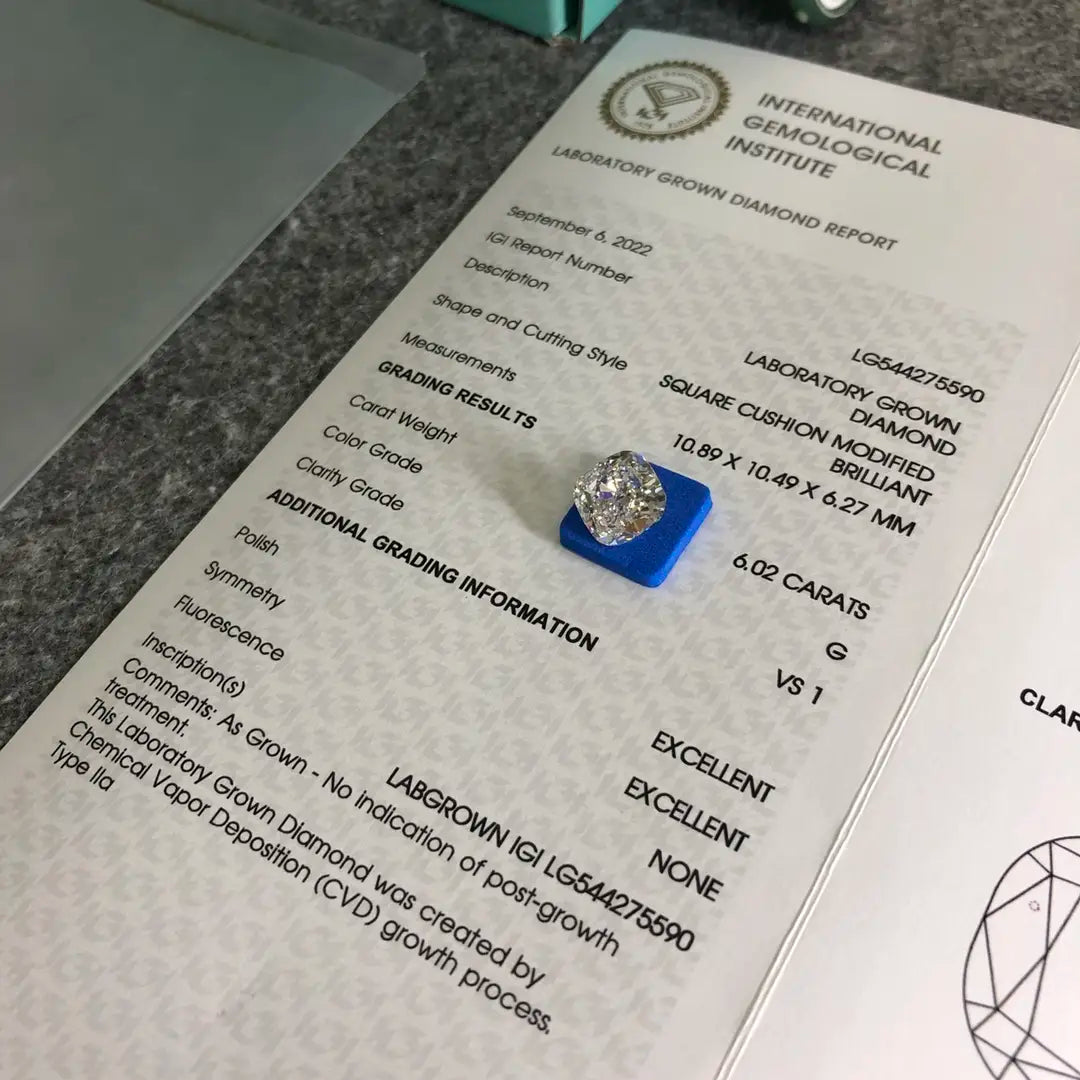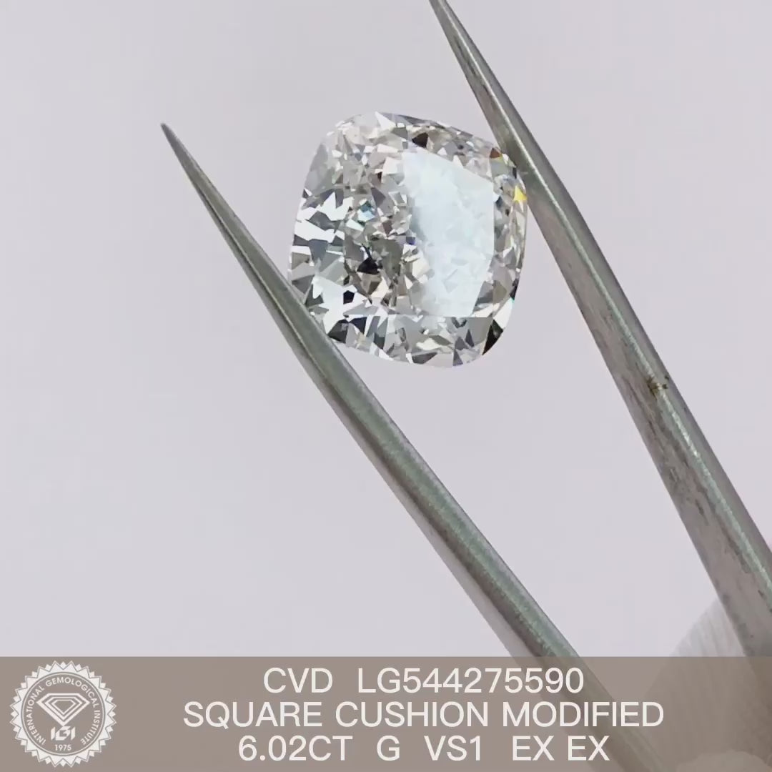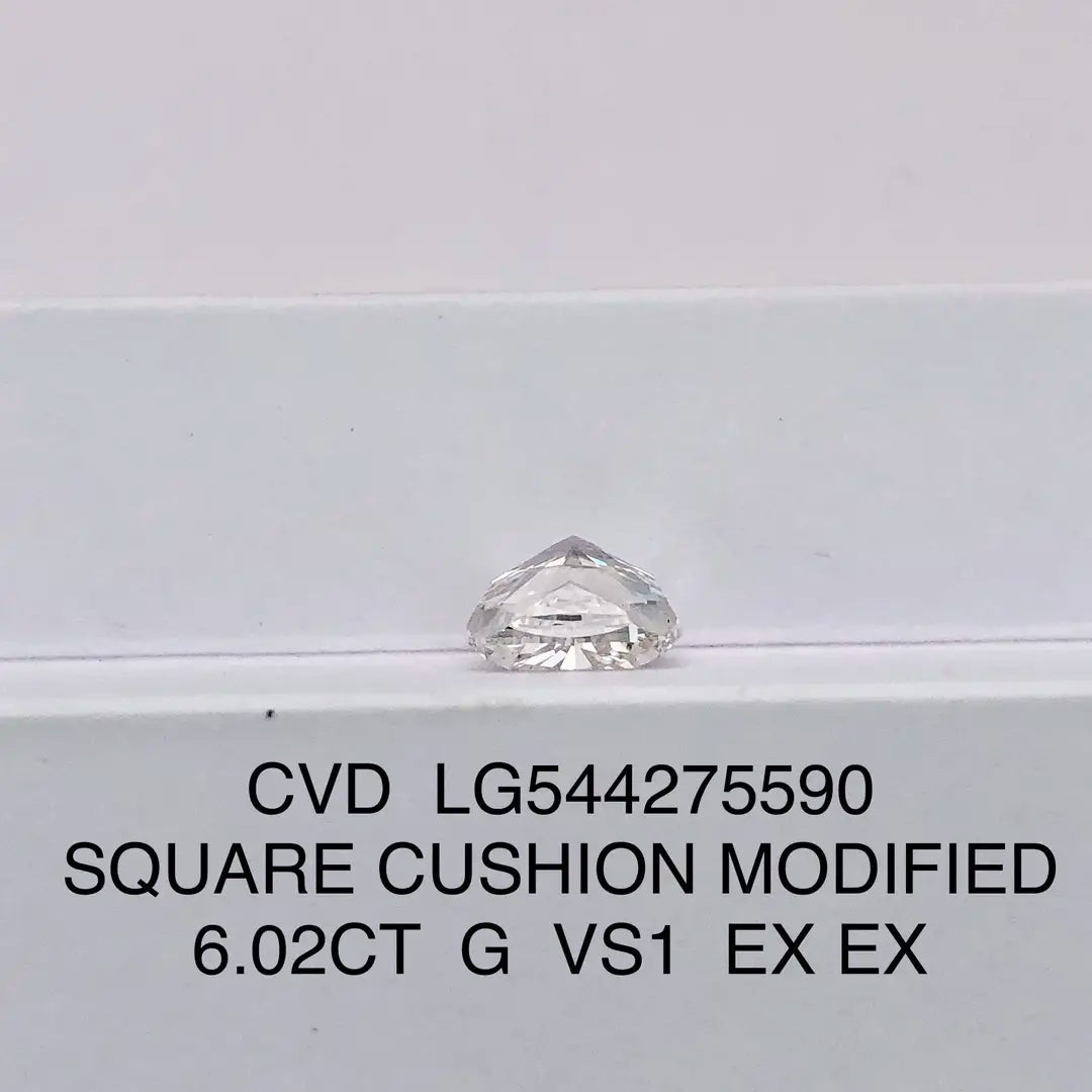 Square Cushion 6.02ct G VS1 CVD Lab Grown Diamond IGI Certificate LG544275590